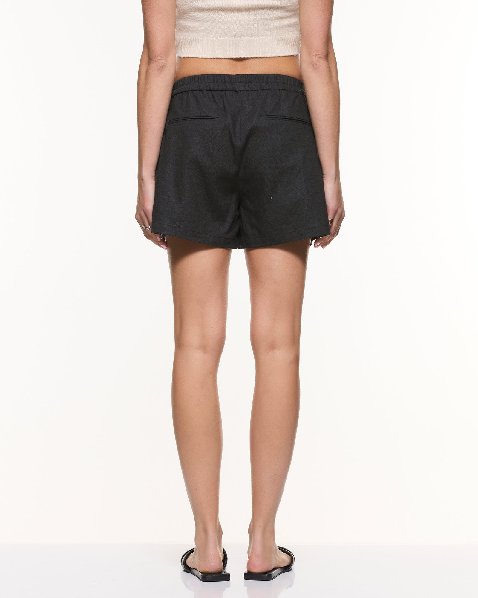 Crafted from breathable linen blend with an elastic waistband for all-day comfort.