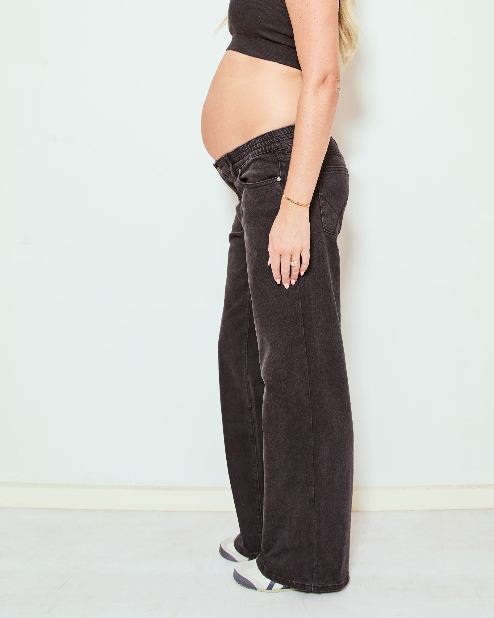 Designed for longevity, the Heaven Straight Jeans are a must in your motherhood wardrobe. With our signature elastic waistband that sits at a comfortable low to mid rise on the belly through all trimesters and well after pregnancy, these jeans have a traditional button and fly and four pocket design and a super flattering wide leg silhouette. The classic blue wash pairs back well with any top and they have just the right amount of stretch.