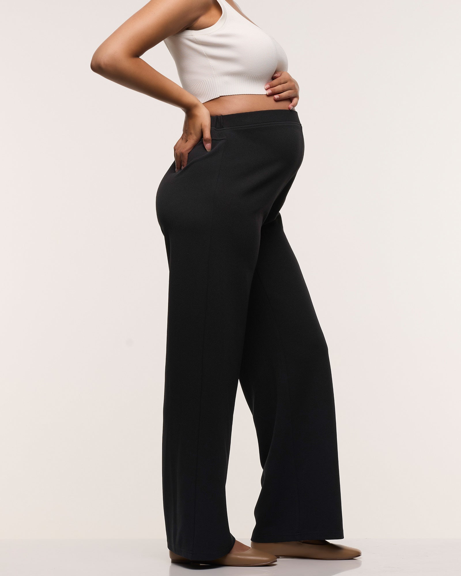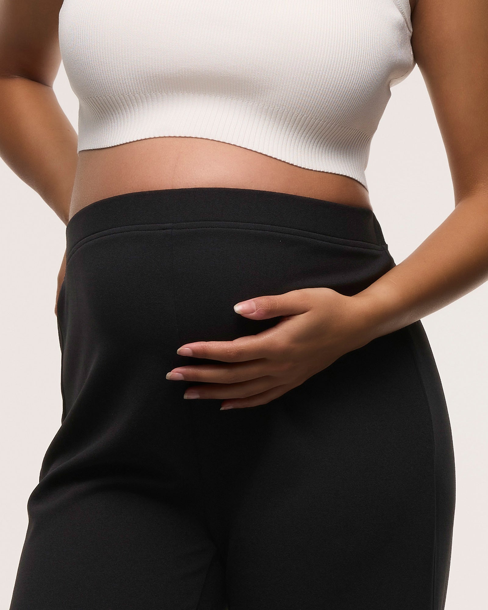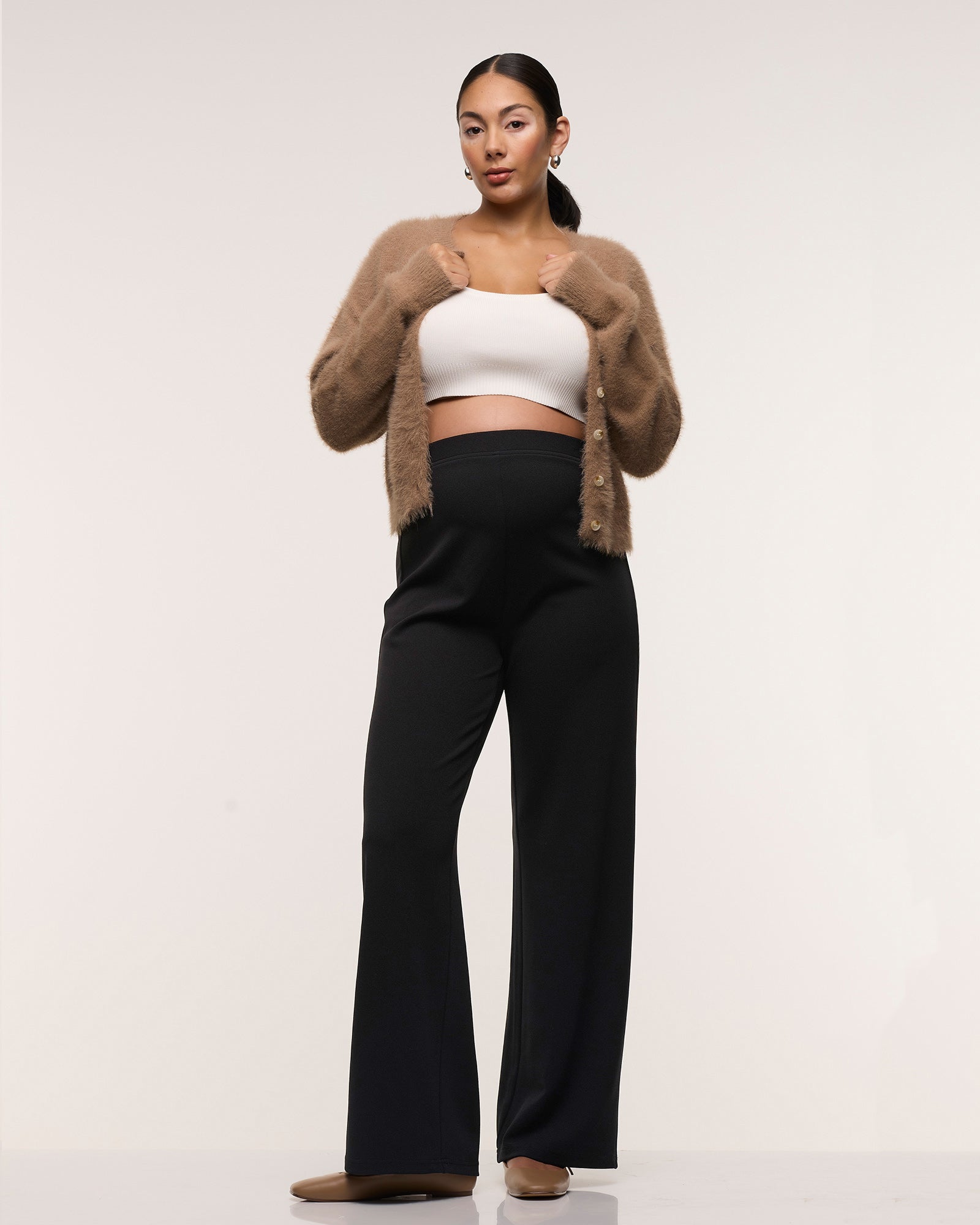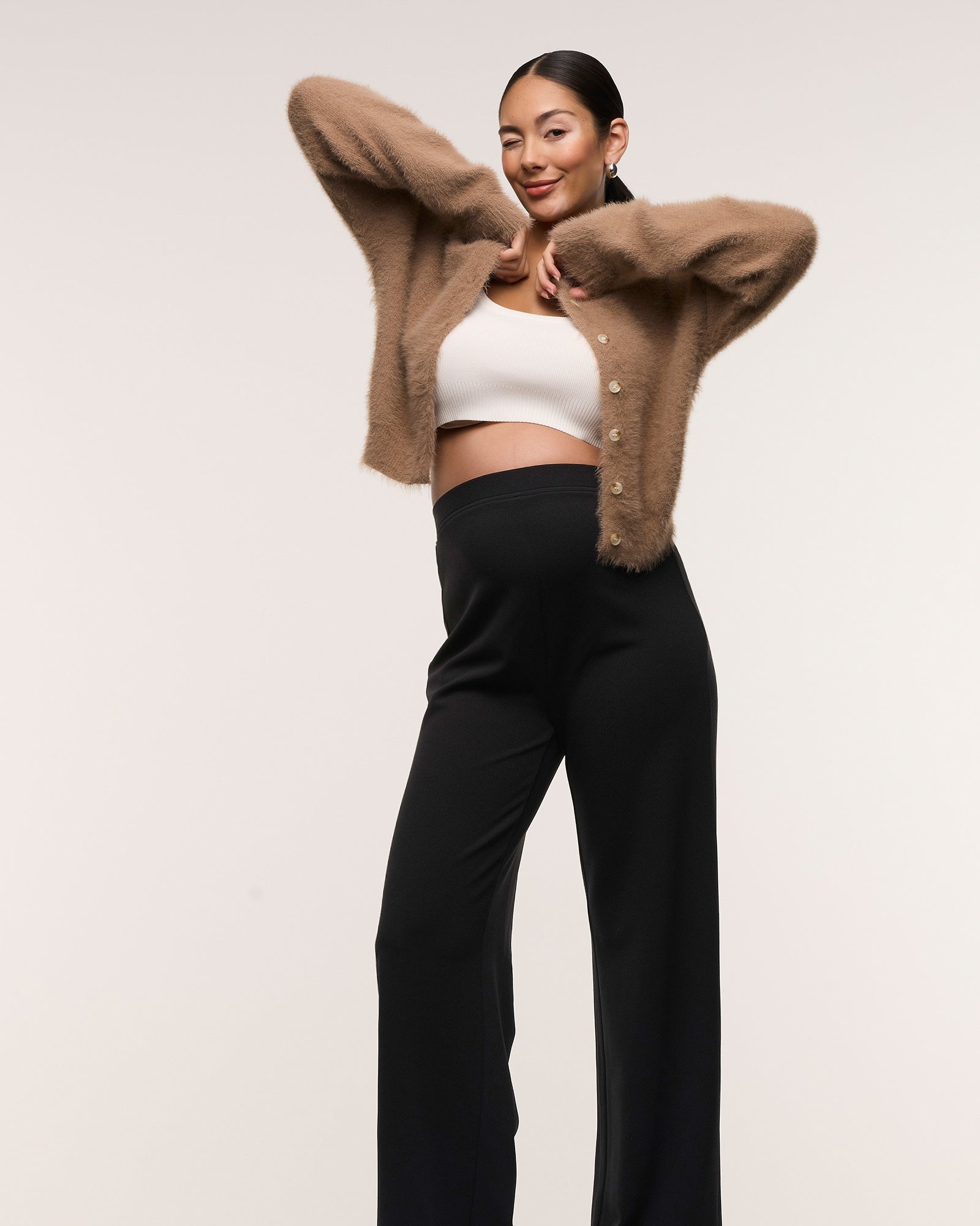 Our Pull-on Wide Leg Pants are a pant that you will not want to take off this pregnancy! Made in a super stretchy and soft crepe fabric, the wide leg is flattering and they have a flat front elastic waistband that is gathered at the back for extra growing room. An easy and relaxed style that can be worn every day for any occasion.