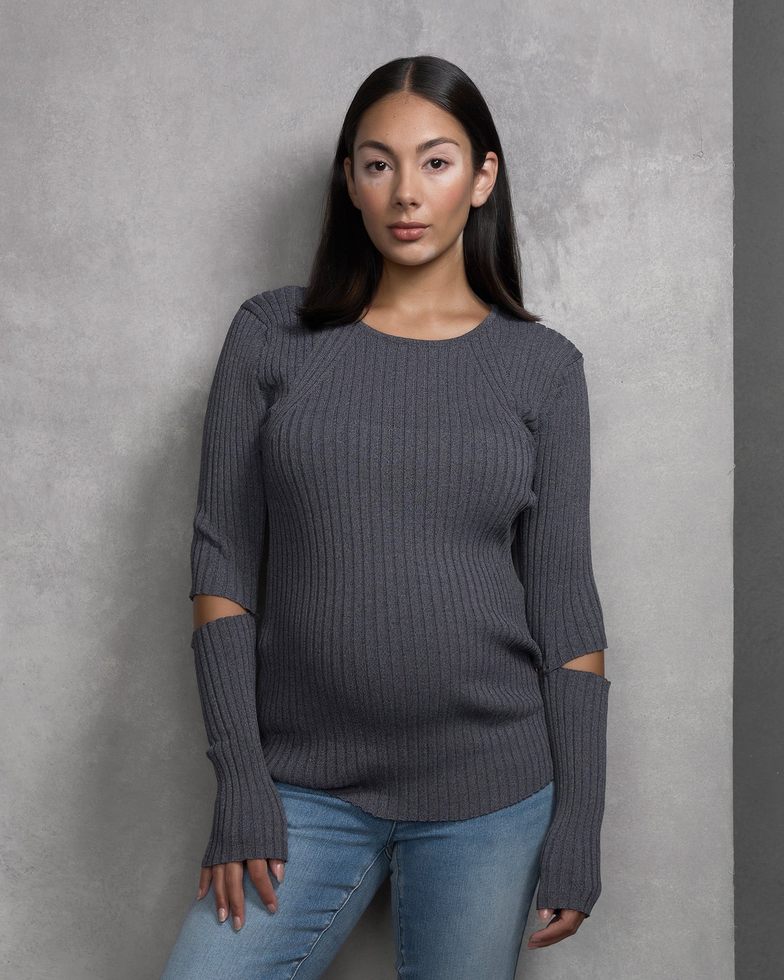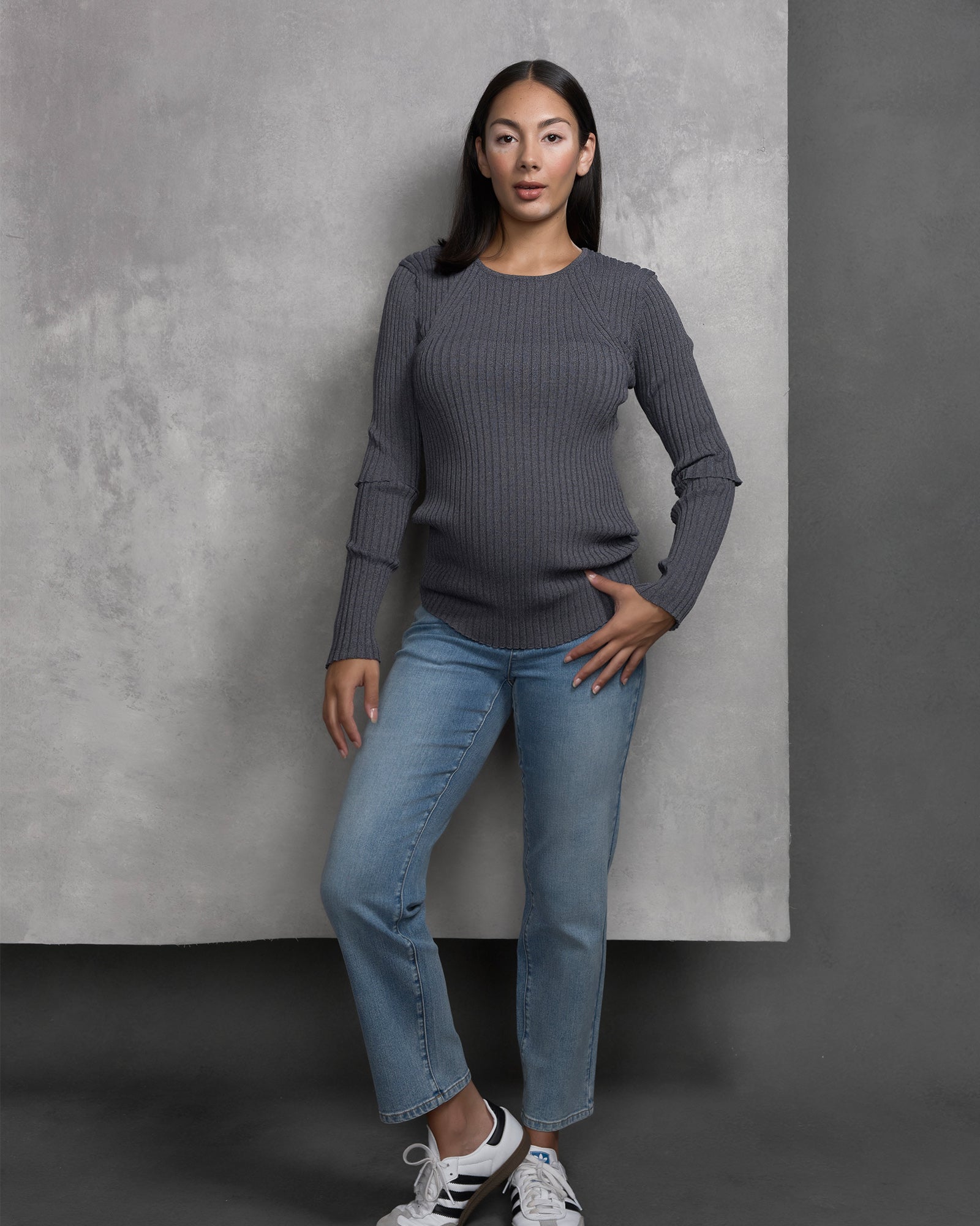 Crafted in a luxe crepe knit, the 2-way Sleeve Feeding Top is a very versatile piece to add to your wardrobe as it’s two different looks in one! Keep the buttoned sleeve attached for an on-trend look or remove it for a polished ¾ sleeve style. The fabric is stretchy to grow with you and will then keep its shape to wear well after your pregnancy and it features hidden side zips for discreet breastfeeding.