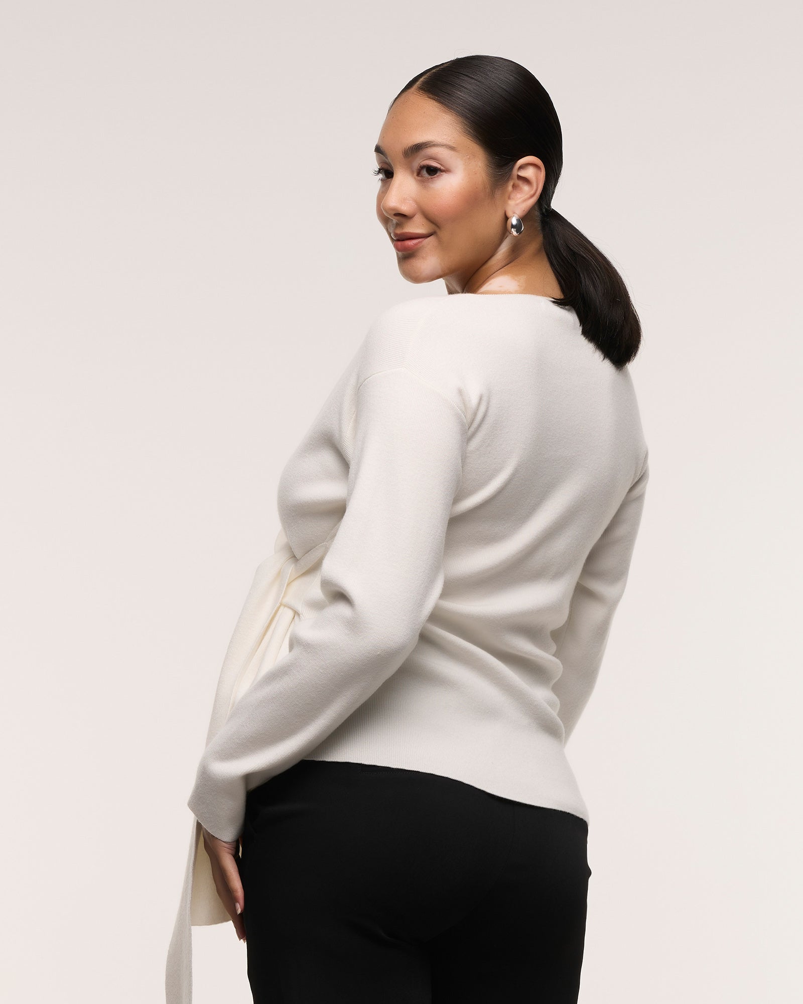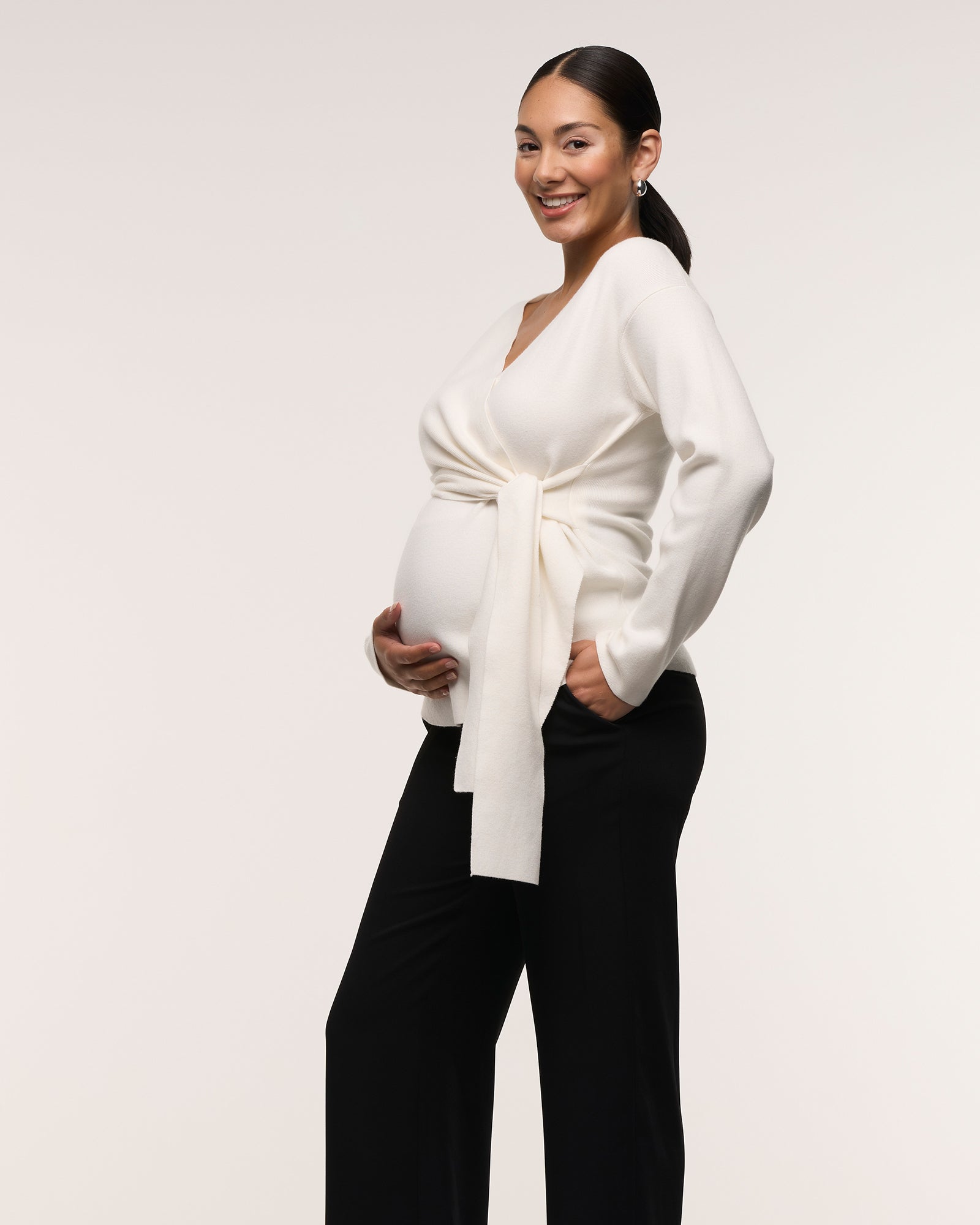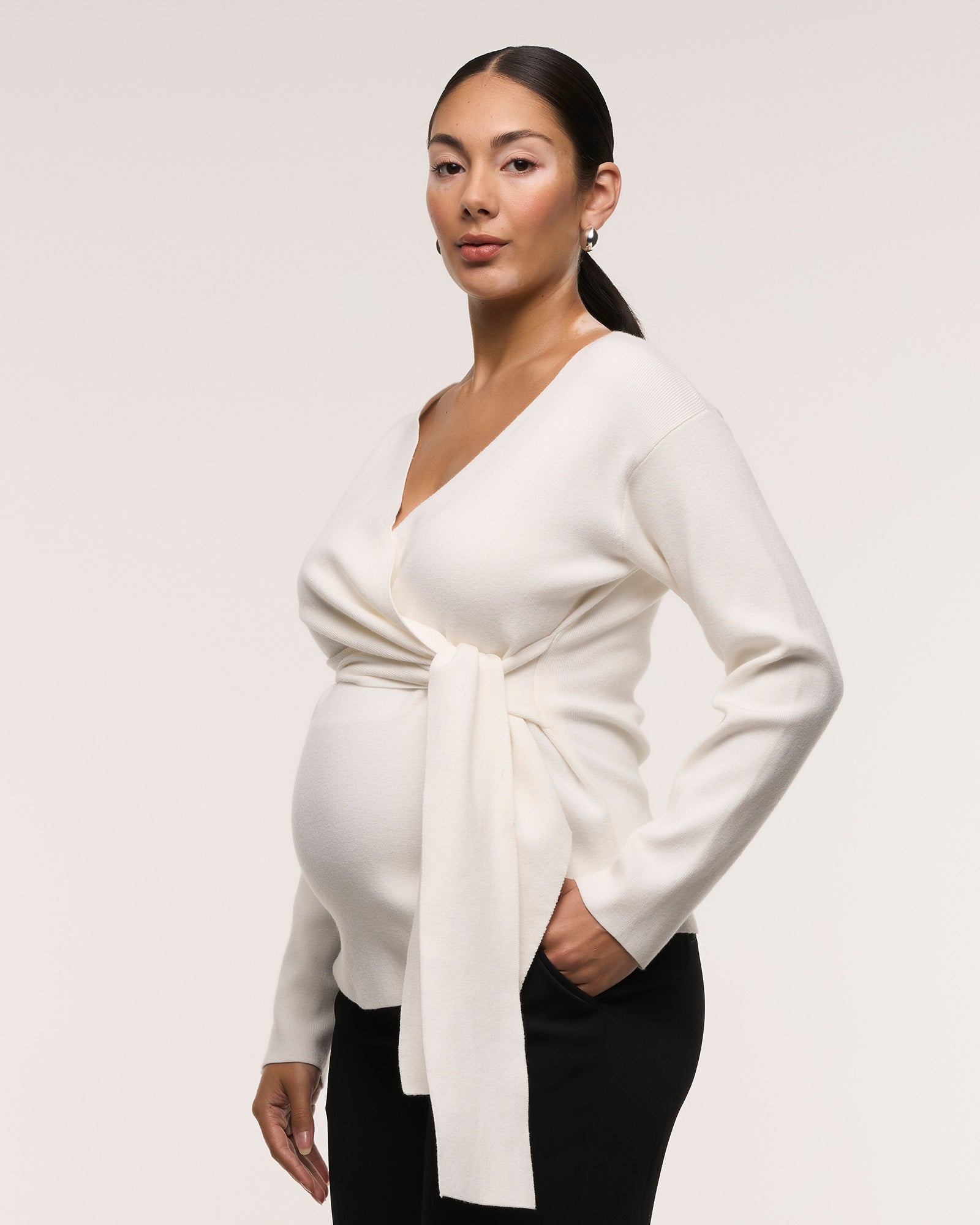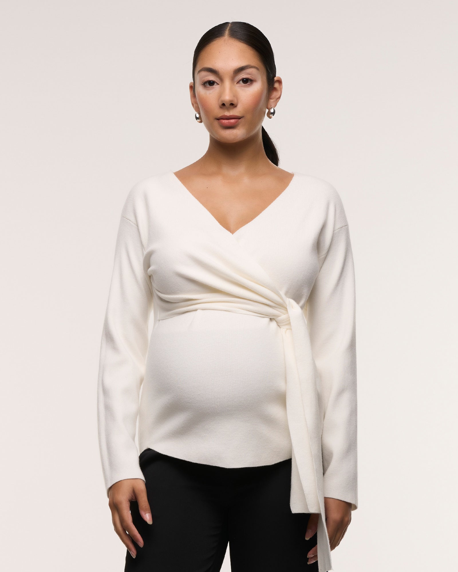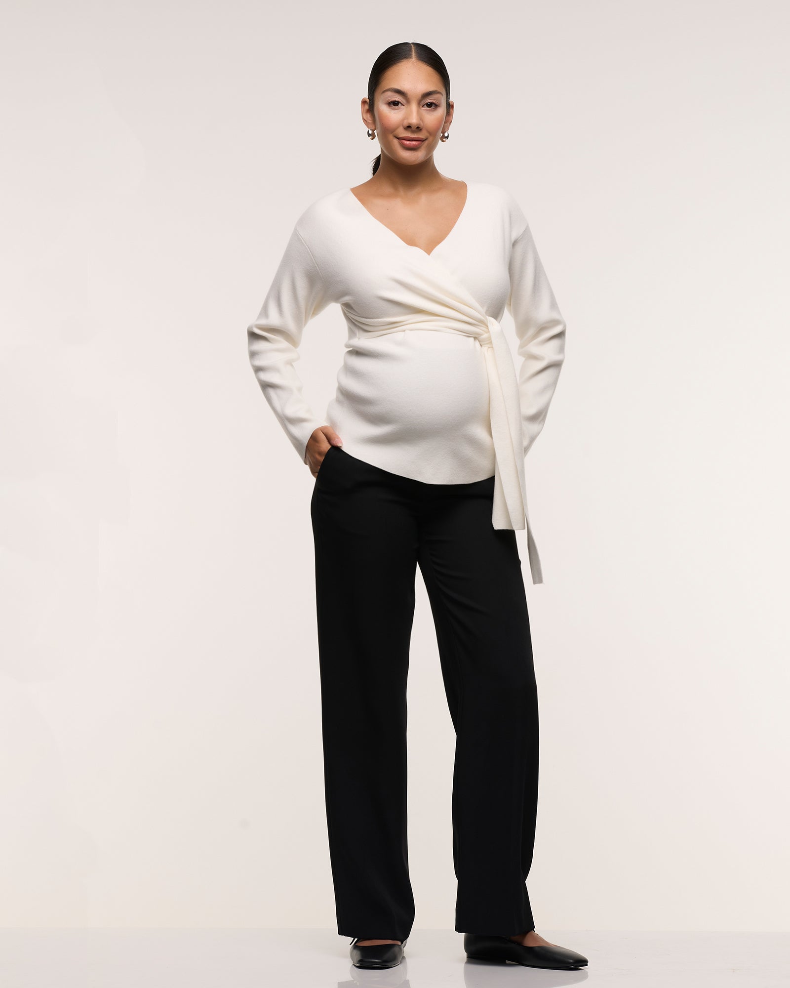 Soft and with just the right amount of stretch, our Cross Wrap Knit Feeding Top is available in both black and Ivory. This knit has a v-neck and clever cross wrap design detail making for quick and discreet nursing access. Pair it with a wide leg black pants for a sleek office look or with our premium denim on the weekends.