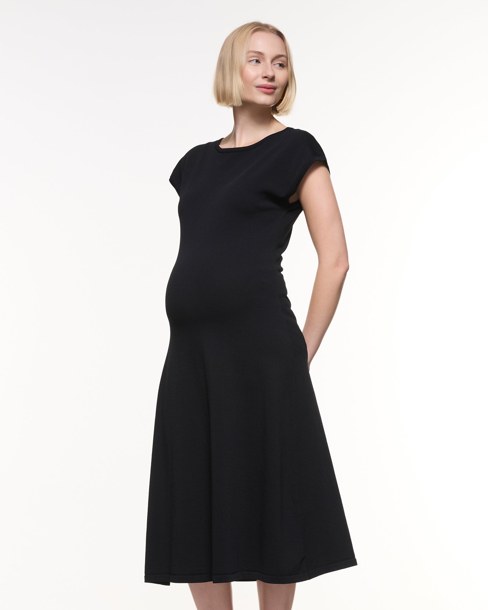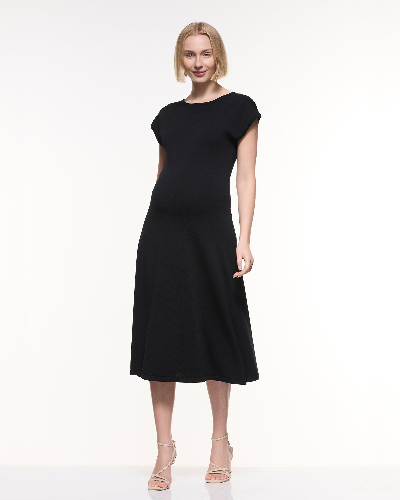 Elegant and timeless, our Grace Cap Sleeve Dress is crafted from a soft, stretchy Milano knit fabric that fits seamlessly through all trimesters and well beyond pregnancy, as the fabric retains its shape. Featuring a classic boat neckline, cap sleeves, and a slightly flared skirt, this dress offers a flattering silhouette for all women.