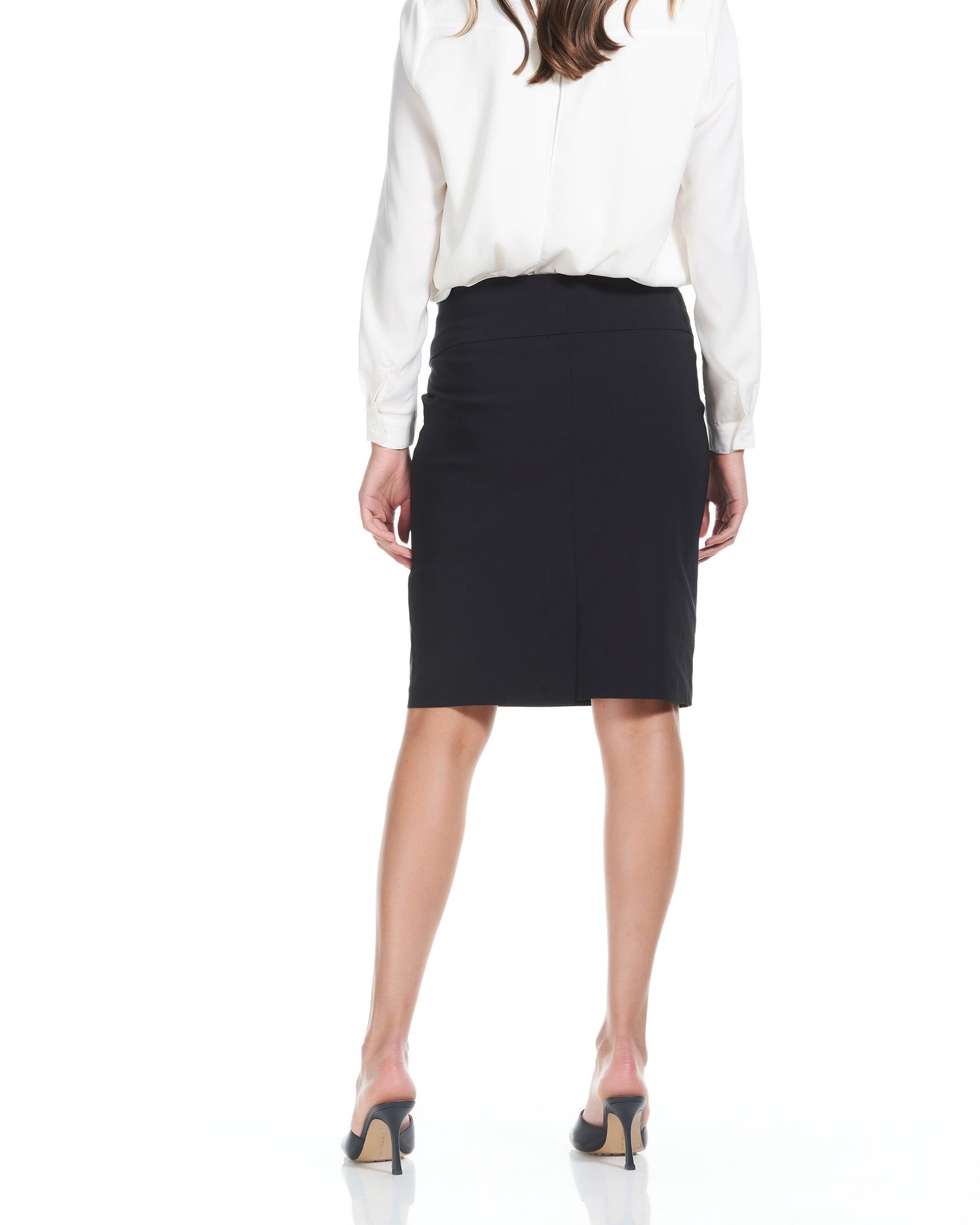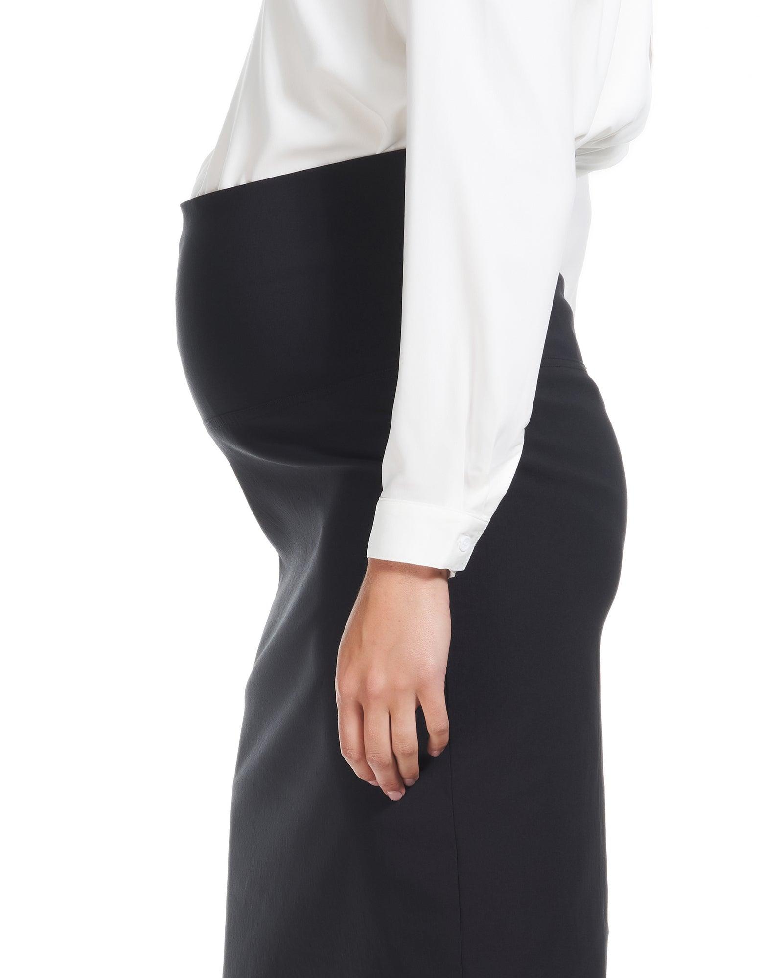 Have you been looking for the perfect black work skirt? Our Flora Fold Pencil Skirt will tick all the boxes! With a wide stretch waistband which can be worn over your bump or folded down, this skirt has a semi fitted silhouette and sits just above the knee.