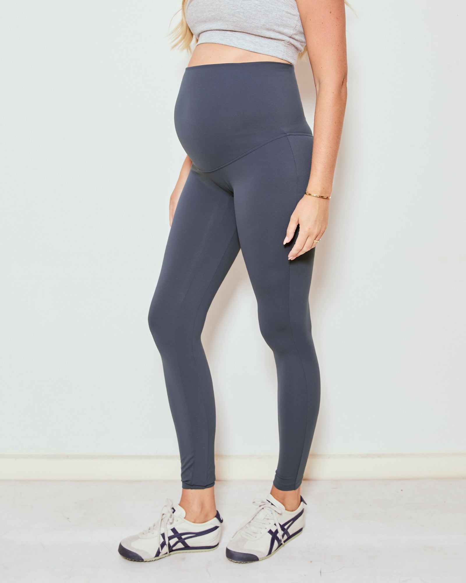 Our Super Stretch No Line Leggings are designed for everyday comfort with a smooth, flattering finish. Made from buttery-soft, four-way stretch active fabric, they move with you through every stage of pregnancy. Featuring a supportive foldable over-belly waistband and a no front seam design for a smooth, distraction-free finish, they create a clean silhouette perfect for workouts, lounging, or layering.