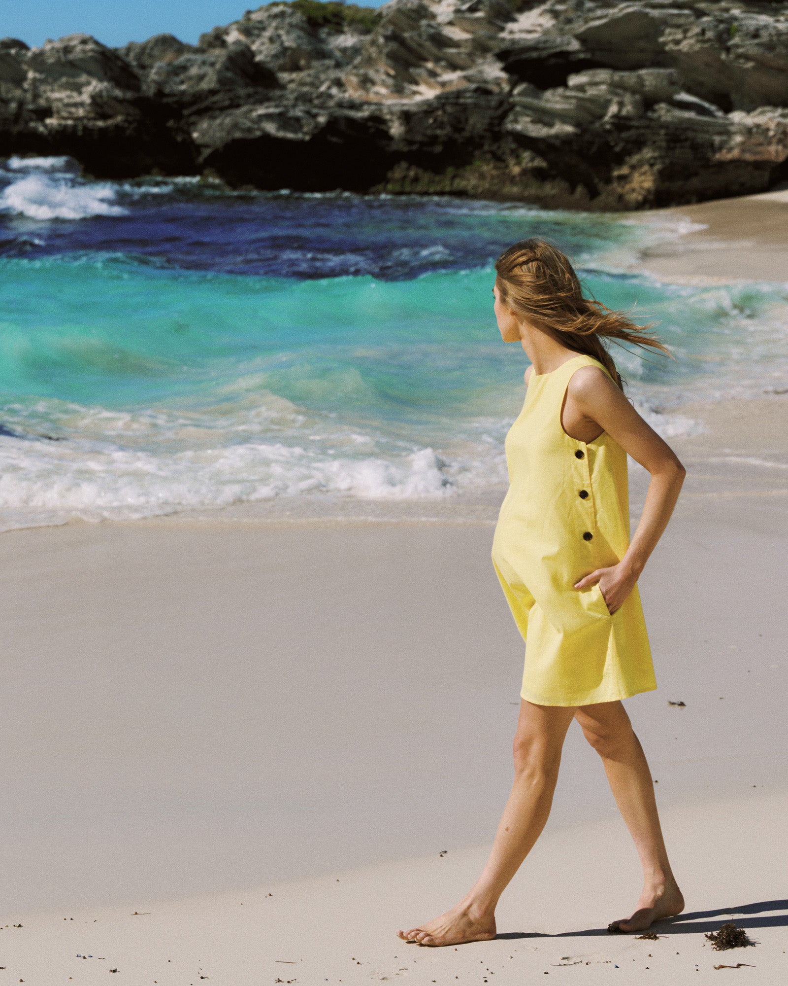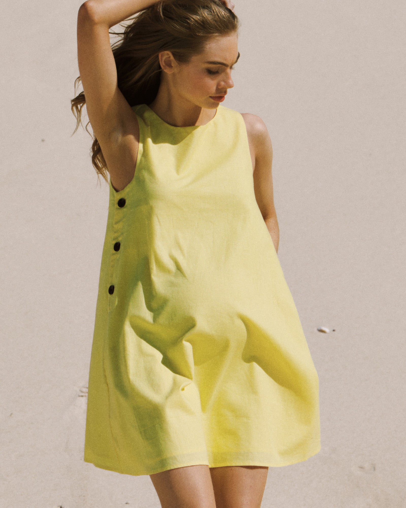 A summer-ready staple crafted in breathable linen, the Maeve Dress is designed for both pregnancy and nursing. Featuring side button openings for easy feeding access and a relaxed A-line silhouette, it blends comfort with effortless style — from bump to beyond.
