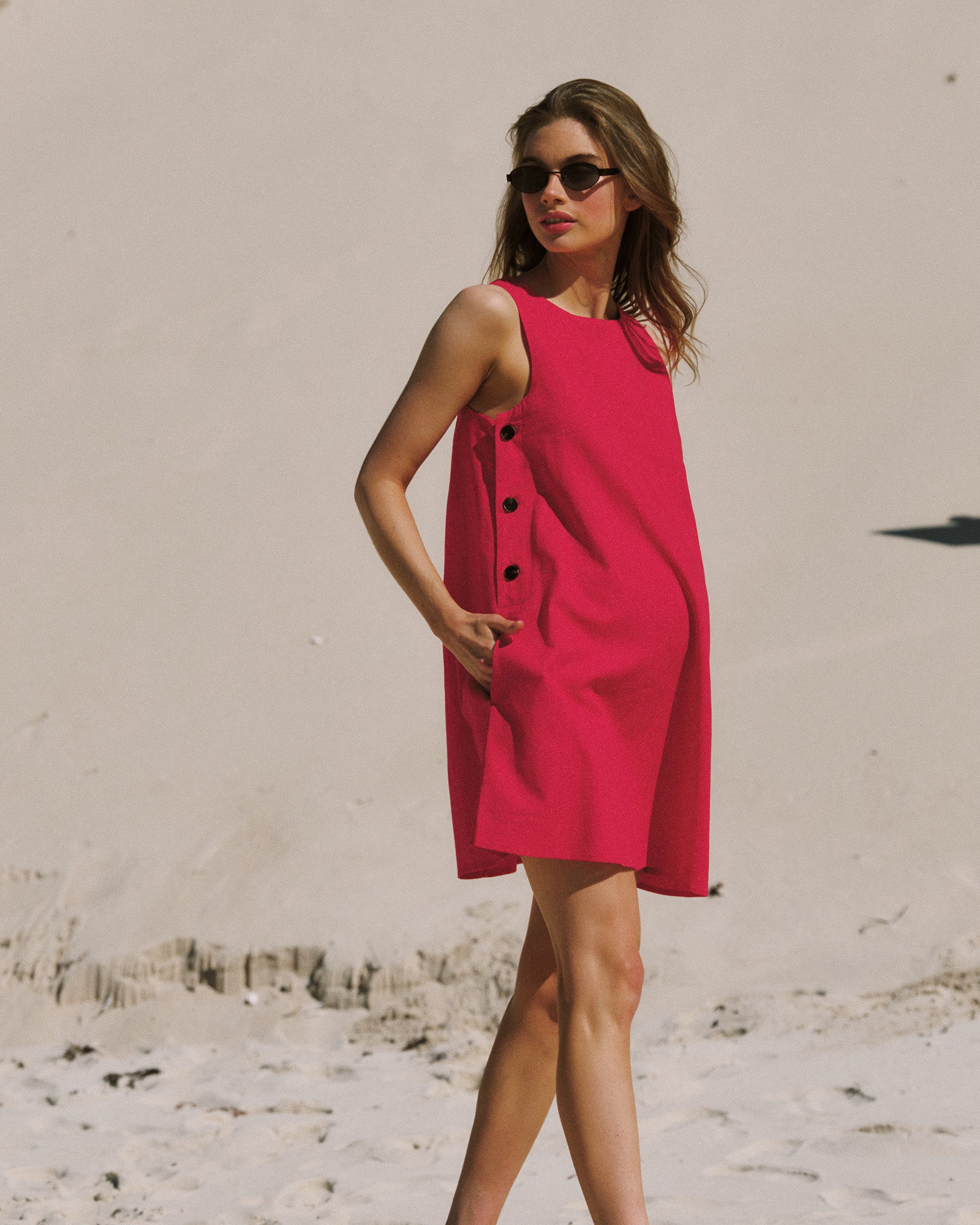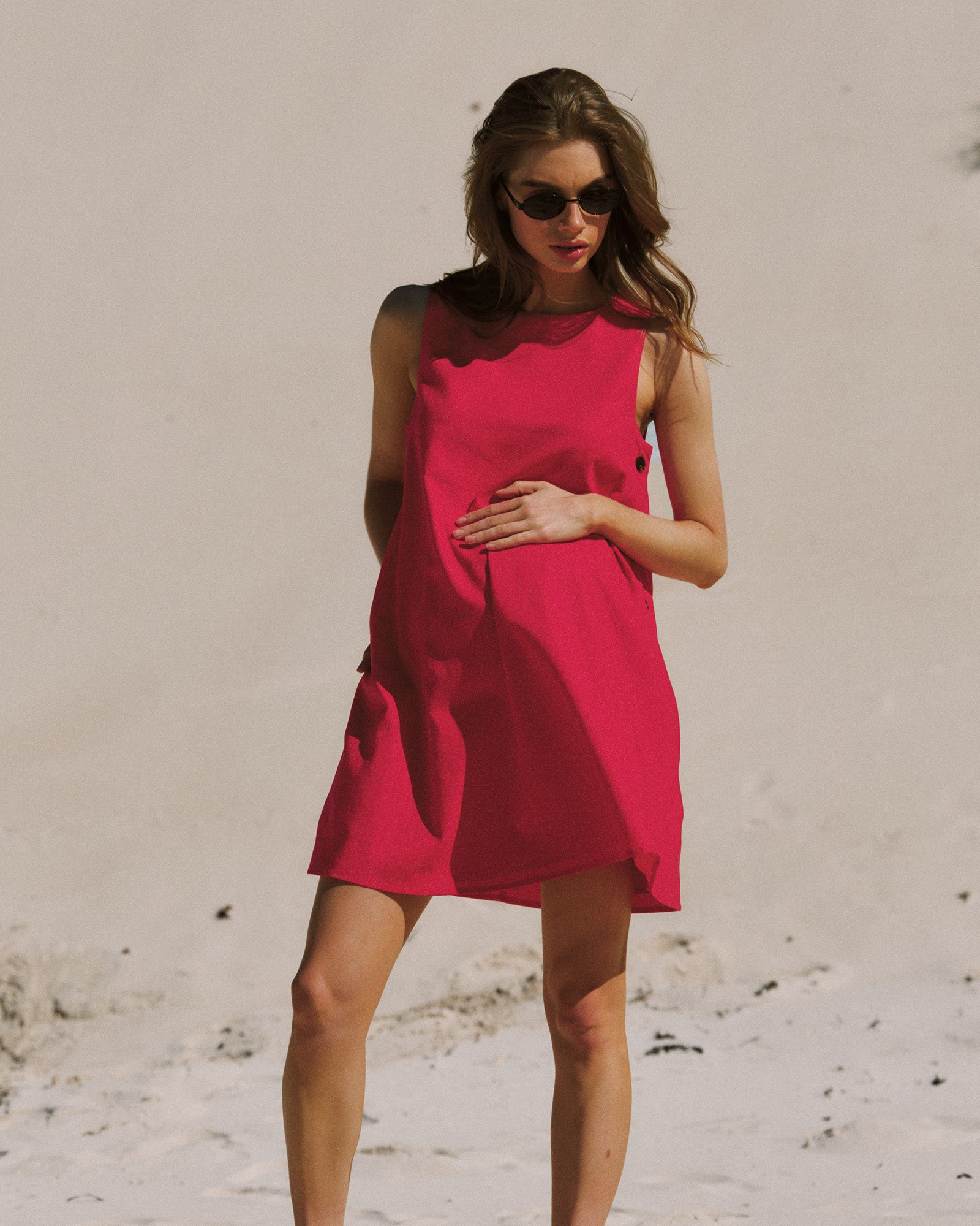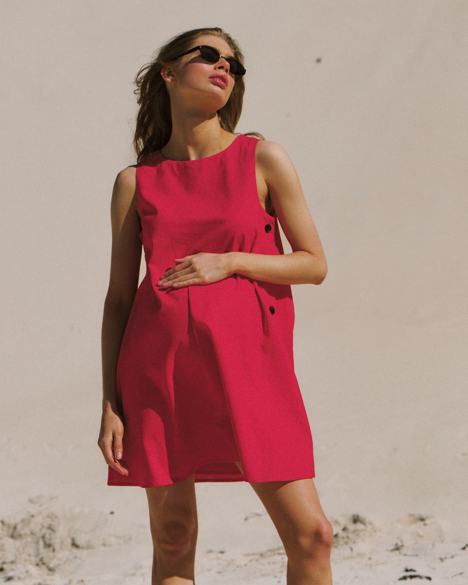 A summer-ready staple crafted in breathable linen, the Maeve Dress is designed for both pregnancy and nursing. Featuring side button openings for easy feeding access and a relaxed A-line silhouette, it blends comfort with effortless style — from bump to beyond.