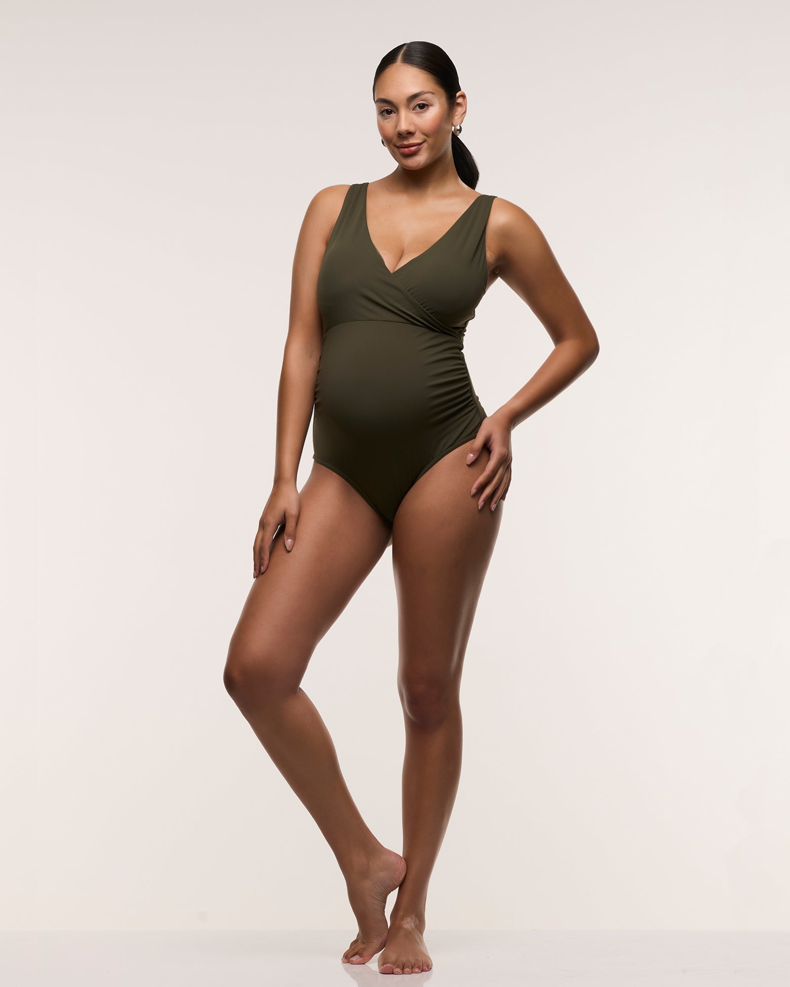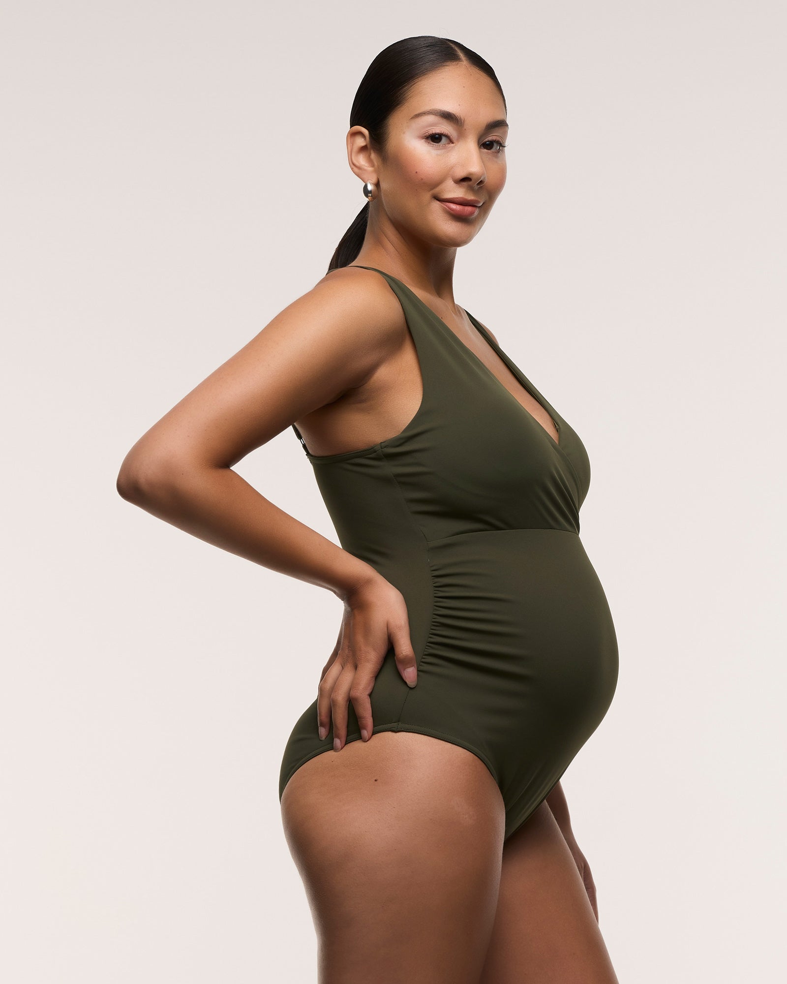 -Side seam ruching for growing bump