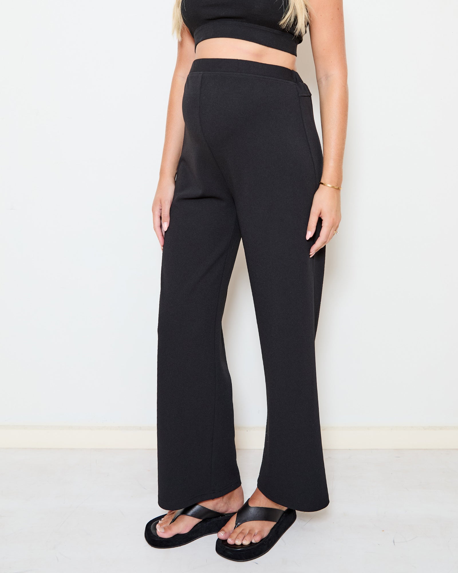 Designed with a smooth flat-front elastic waistband and subtle gathering at the back for extra growing room, they’re an effortless staple for pregnancy and beyond.