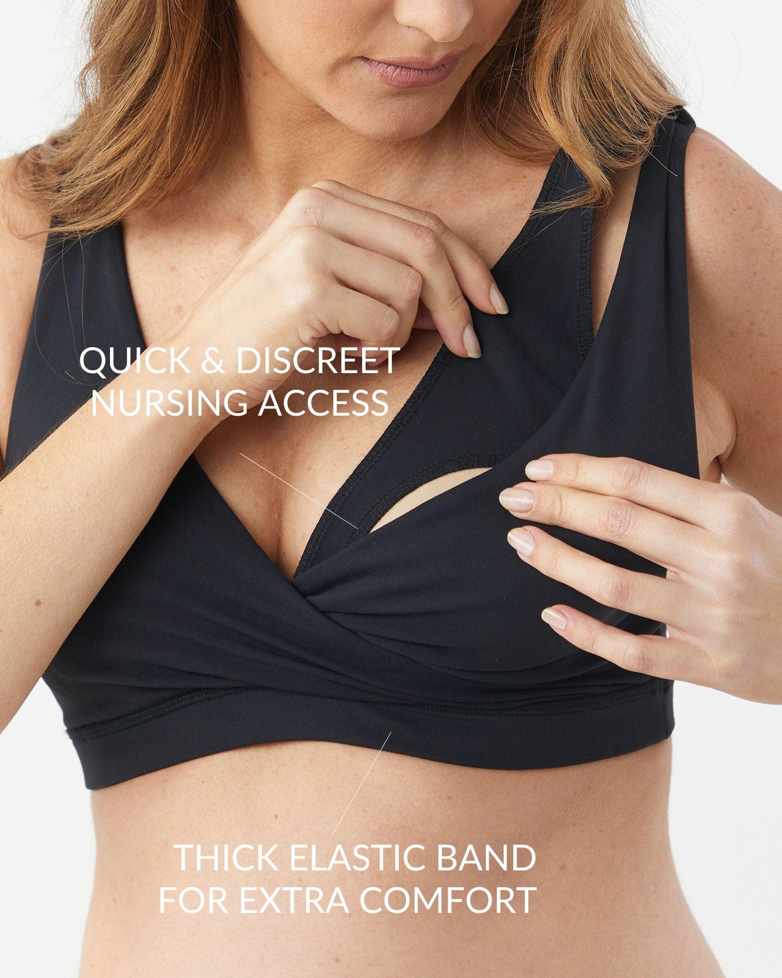 Supportive and functional, meet our new Cross Wrap Nursing Bra. Designed in our four-way stretch active fabric and fully lined, the bra features adjustable straps, cup inserts that can be removed, a thick elastic band for extra comfort, and an open inner layer so you’re still supported while feeding- simply pull across the cup for quick nursing access.