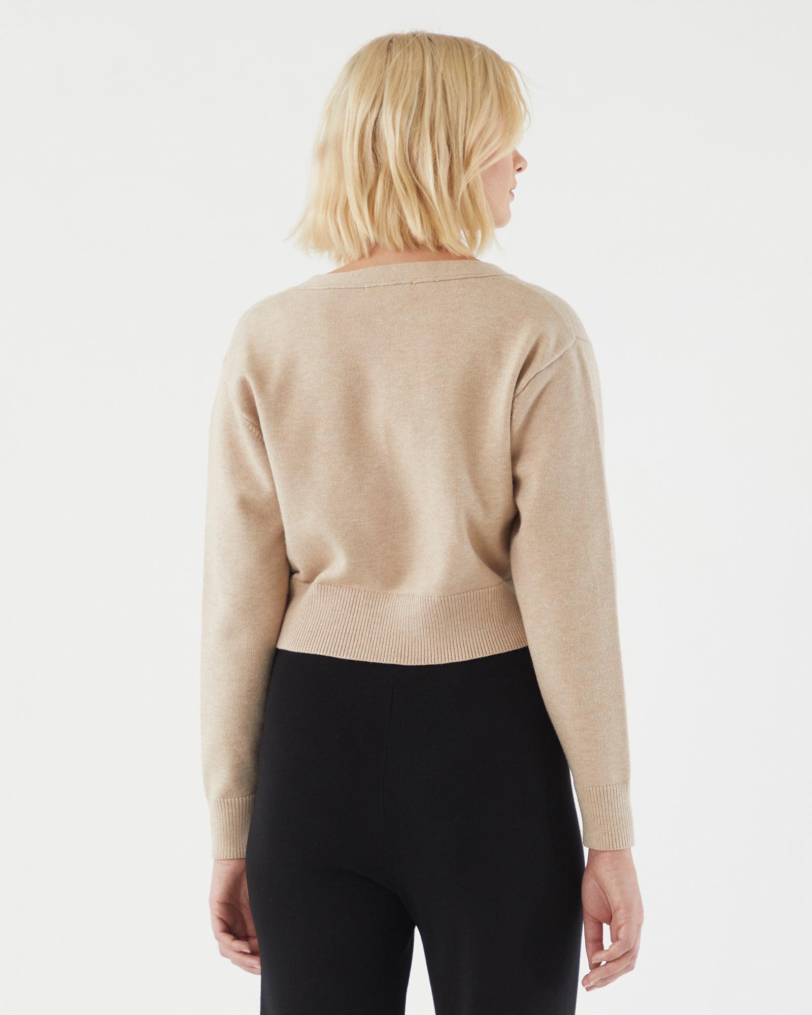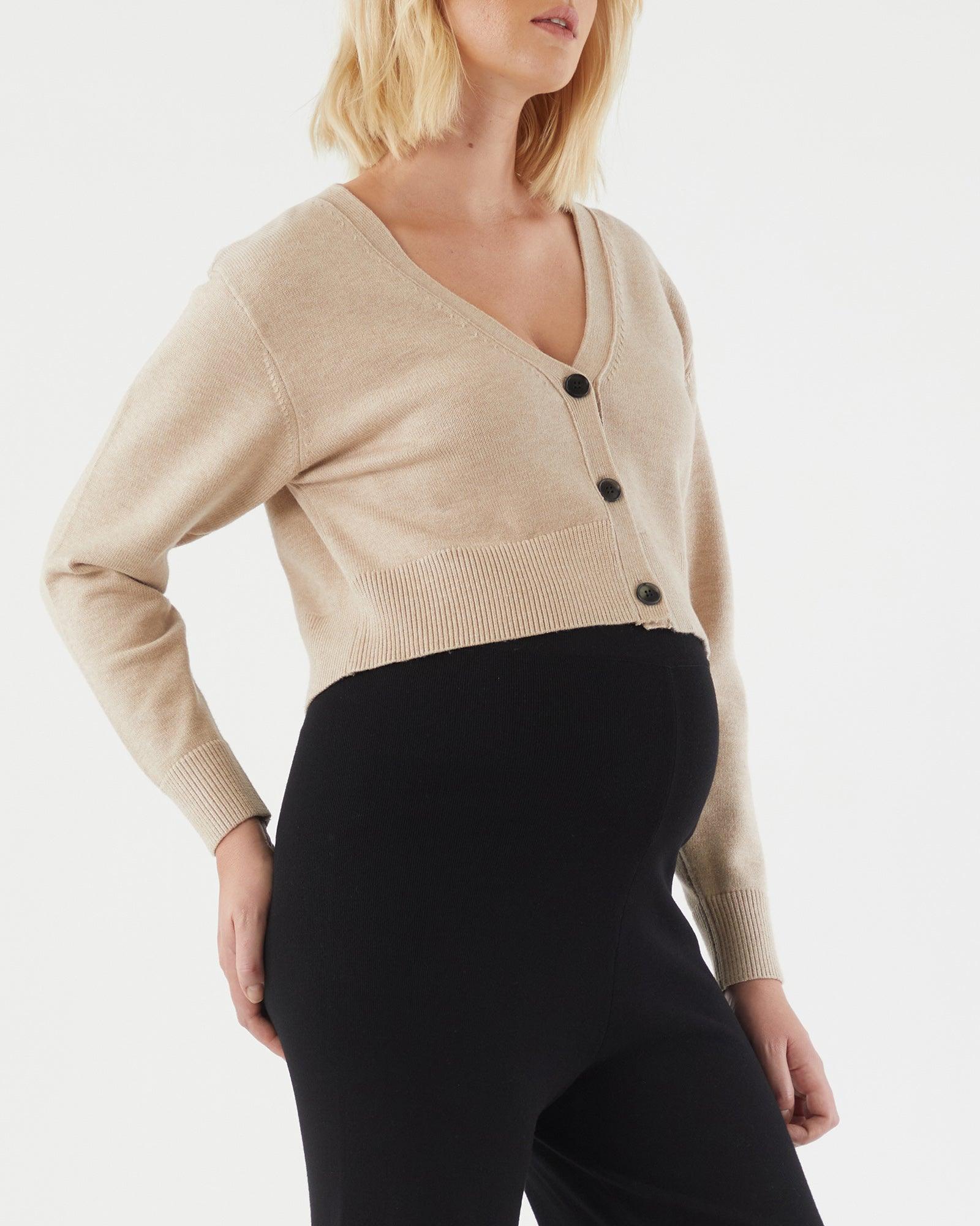 A classic knit that you will wear now and forever, the V Neck Cropped Cardigan is the perfect addition to any outfit! Designed in a beautiful beige marle and bright green, the knit is soft and also has just the right amount of stretch. Wear it open with a classic tee and jeans for a cool casual look, or team it over one of our bump hugging dresses.