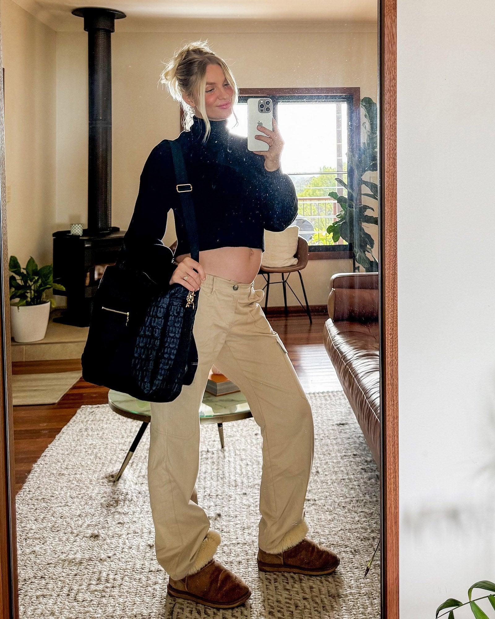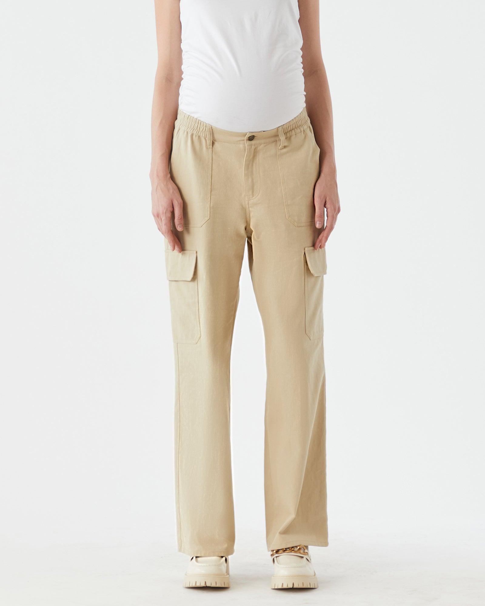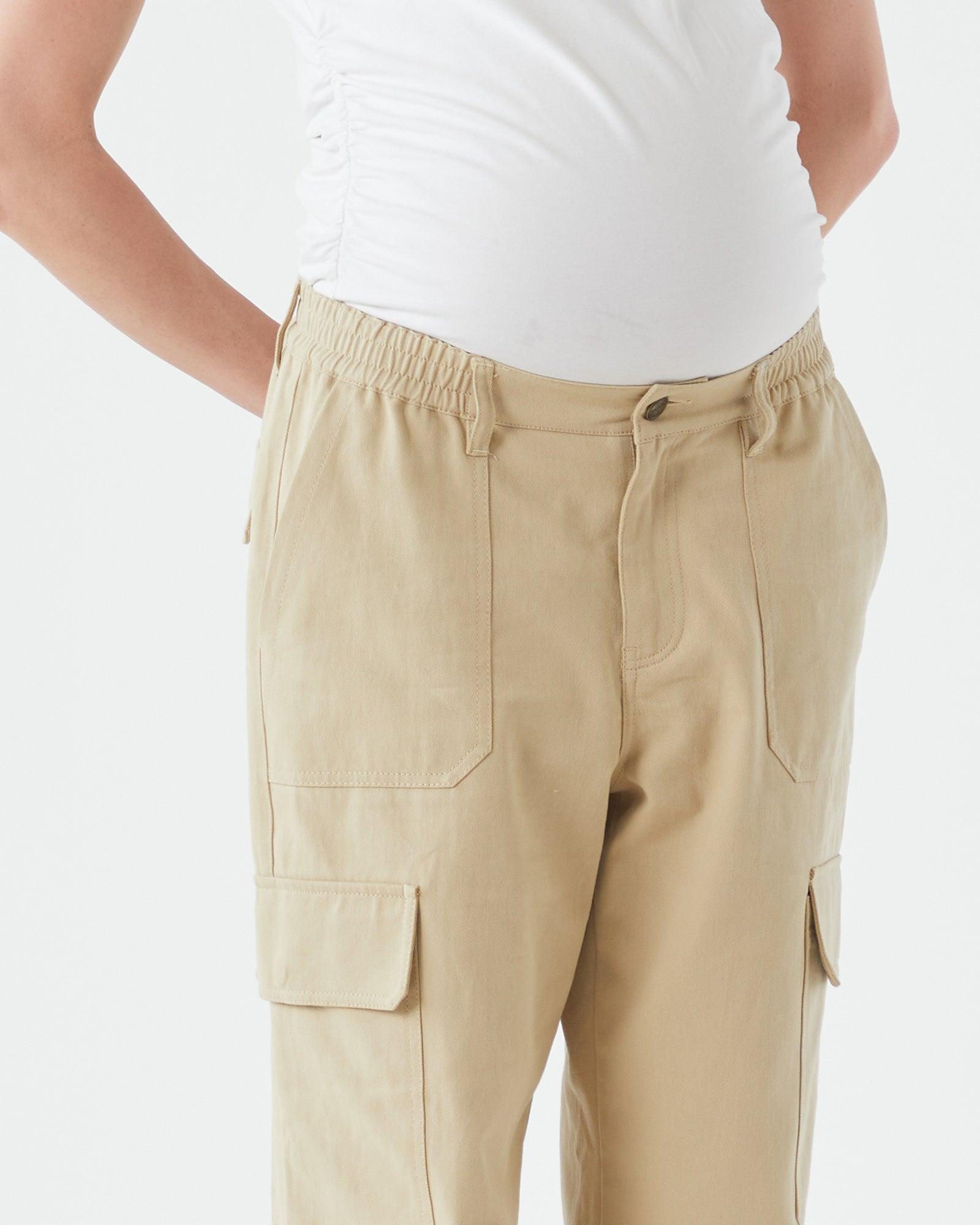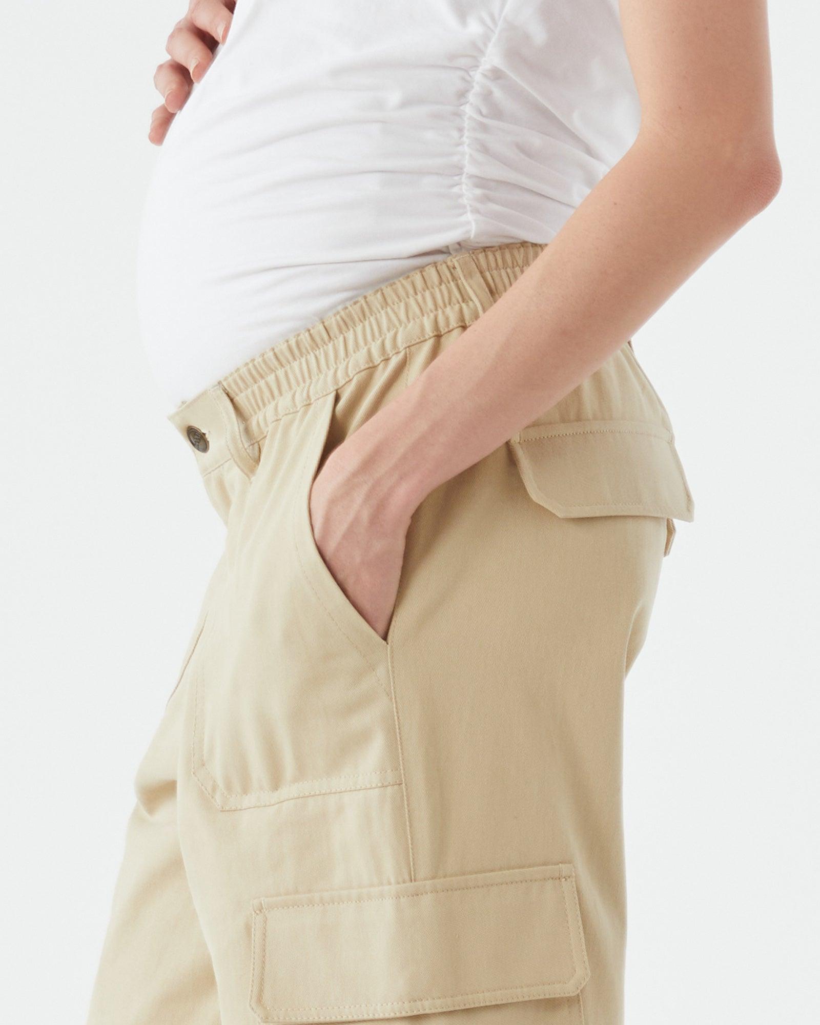 On trend and a must have in your maternity wardrobe this season is our Wide Cargo Pant. Available in three colours- Khaki, Black & Beige, these pants are sure to give you cool off duty mum vibes. Designed with a button & fly and our famous elastic waistband that sits at a comfortable midrise through all trimesters and that can continue to be worn without a belly. They have a wide leg silhouette and oversized pockets and look great styled with a shirt or cropped cardigan.