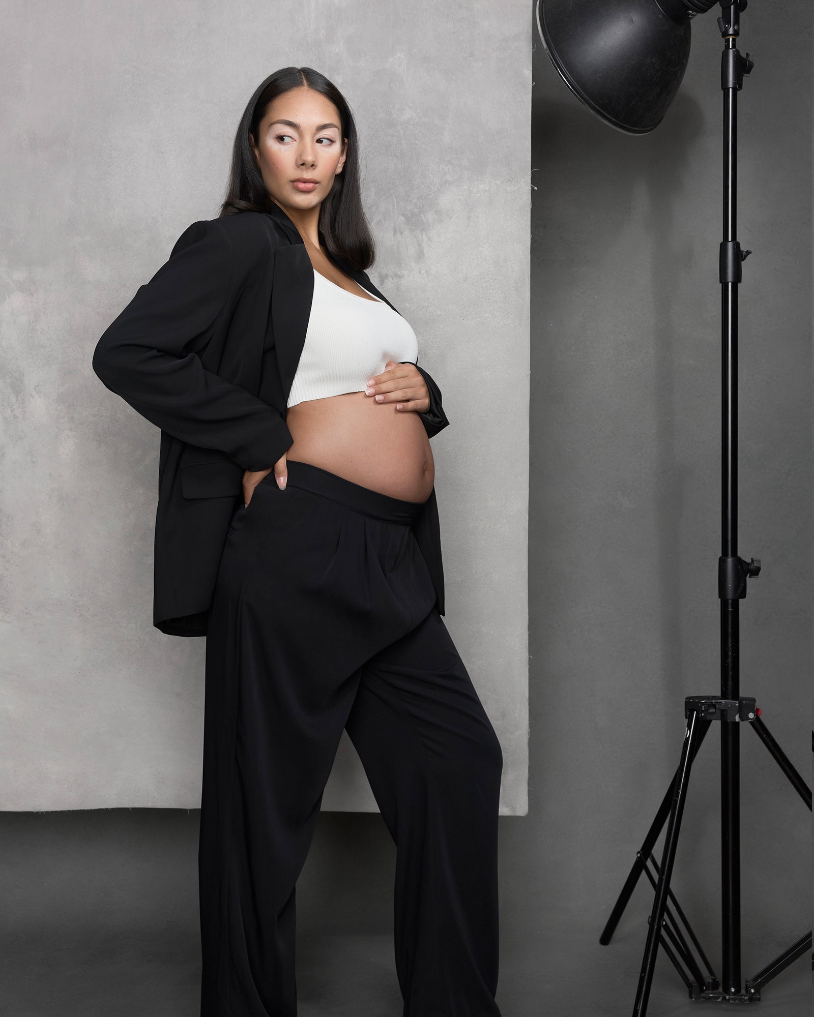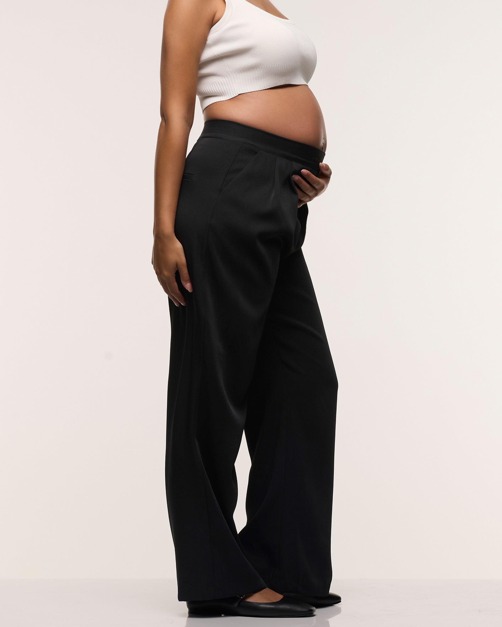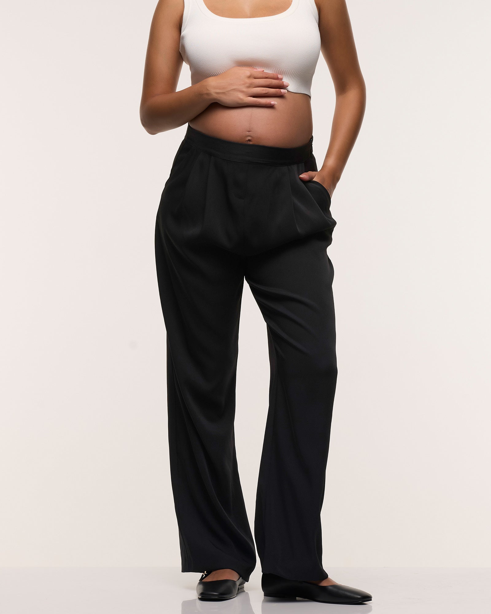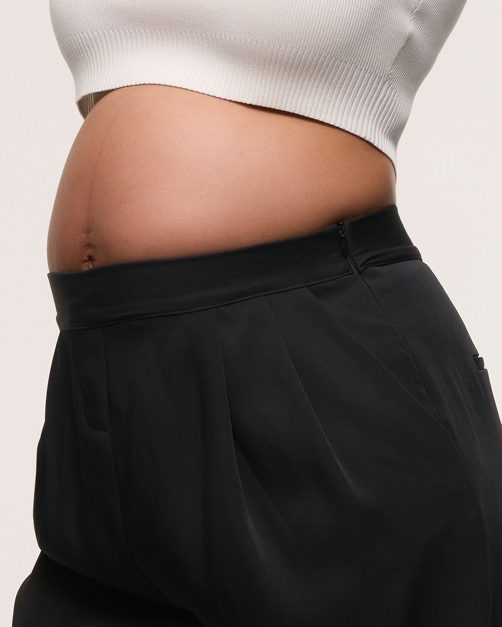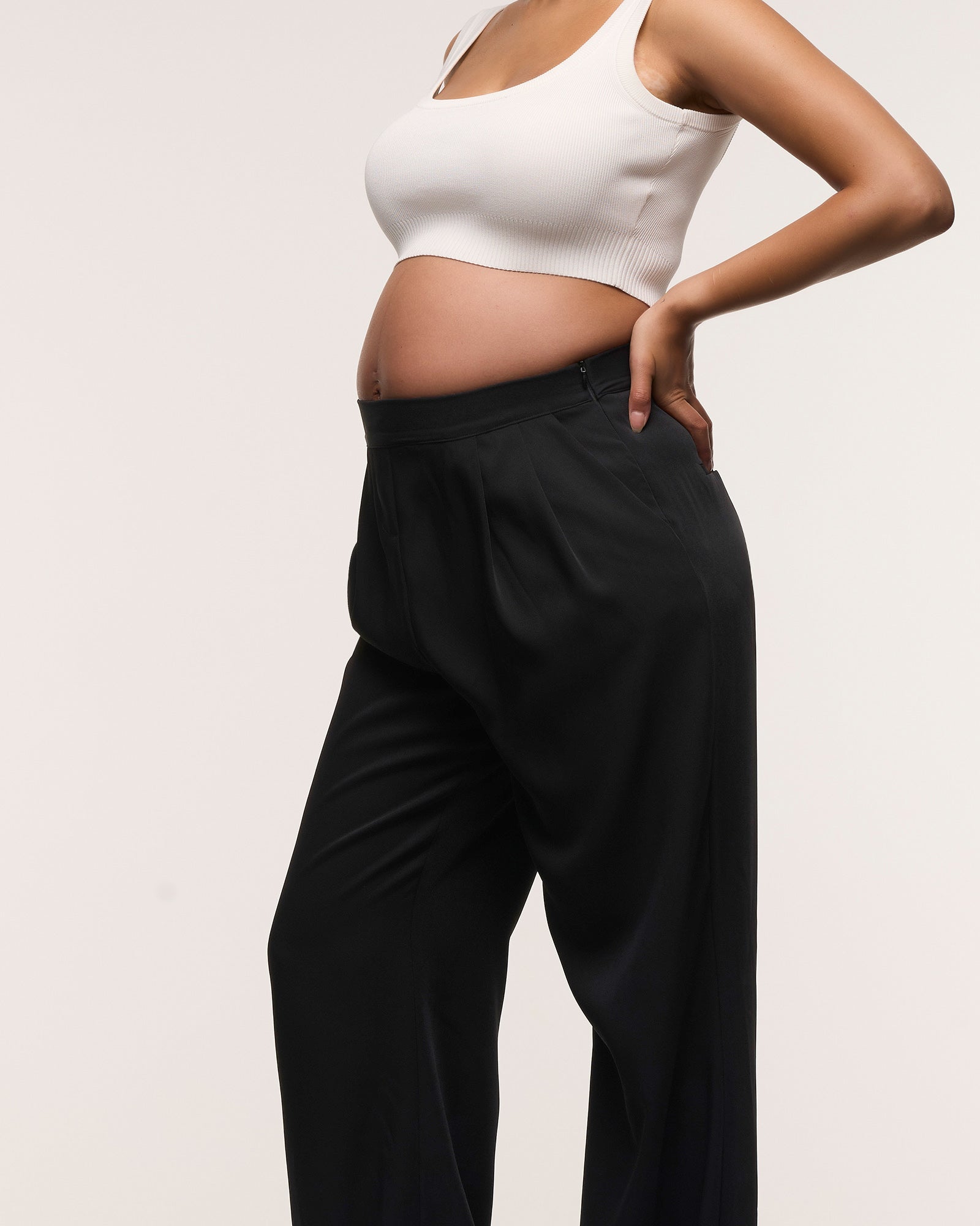 A pant that is ideal for the office, weekend or evening- meet our Wide Leg Pleated Pants. Crafted in a sustainable 100% tencel fabric which is crease resistant and drapes beautifully, they have an on-trend wide leg silhouette and detailed pleating at the front. The full elastic waistband has a side zip closure to sit comfortably over your bump through all trimesters and they will continue to be loved well into motherhood.
