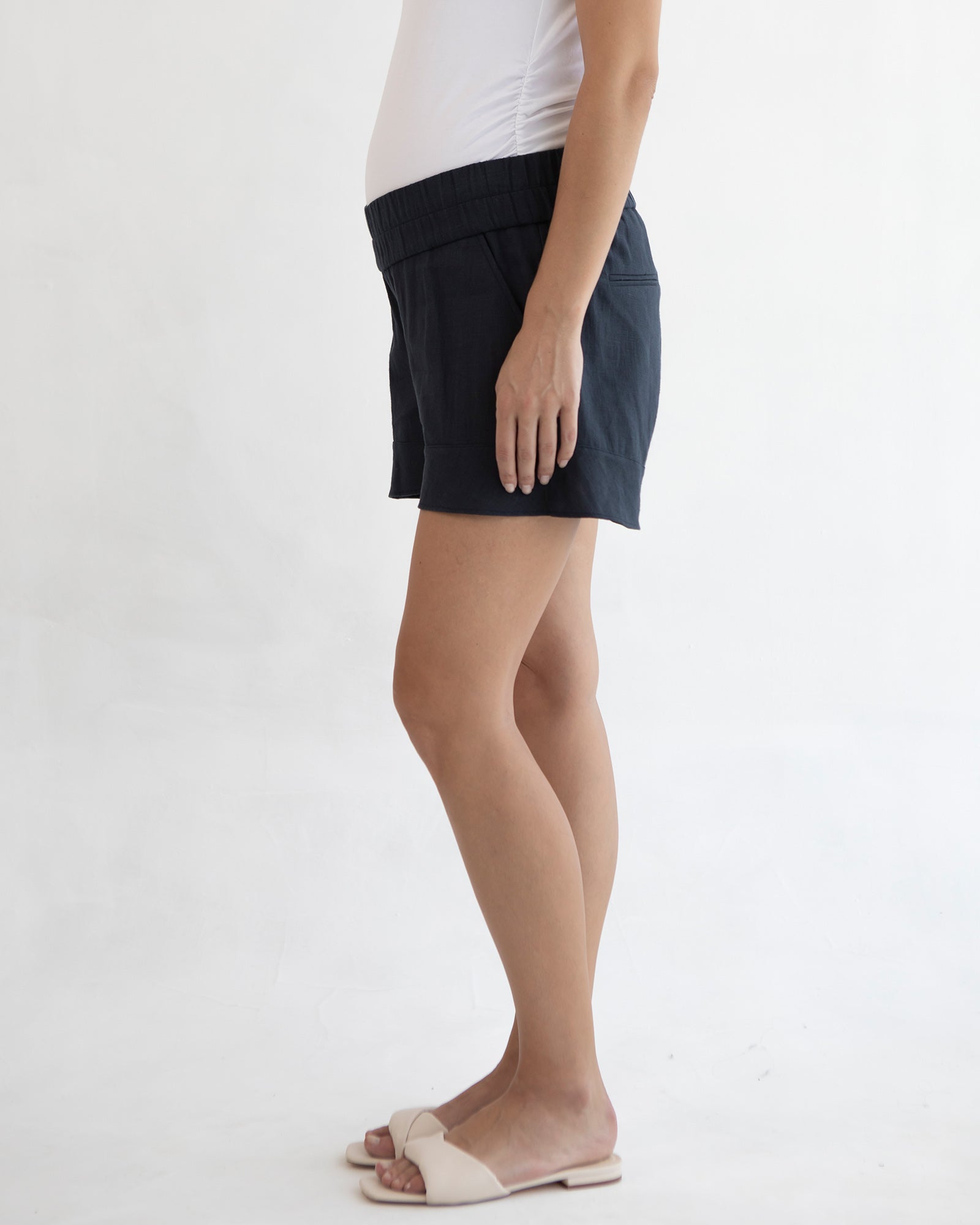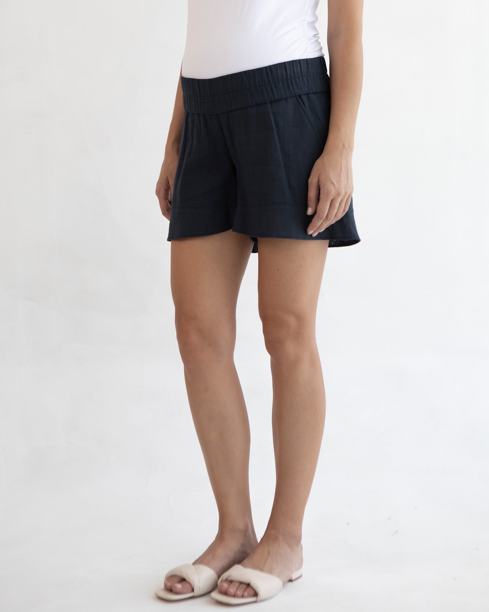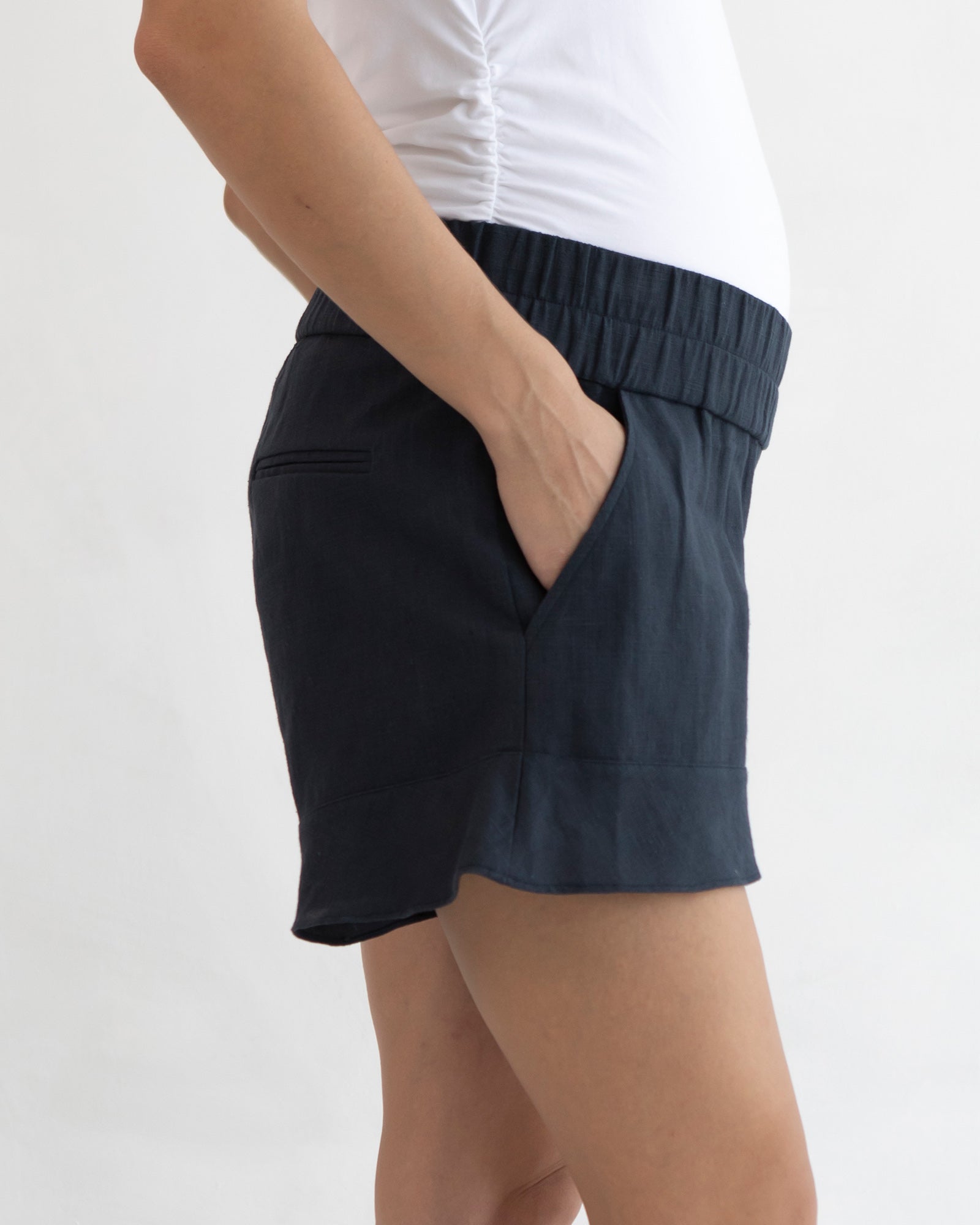 A flattering, comfortable and stylish short to add to your collection is our Wide Linen Short. Made in a breathable 100% linen so you stay cool this summer, they have a wide elastic waistband that sits at a comfortable low to mid rise on the belly through all trimesters and well after your pregnancy. The shorts feature side pockets, closed welt pockets at the back and a wide frill at the hem.