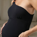 A chic maternity swimsuit with a modern twist. The One Shoulder One Piece features a textured crinkle fabric, tortoiseshell ring detail, and flattering side ruching for your growing bump. Designed for pregnancy and beyond, it brings effortless style to the beach or pool.