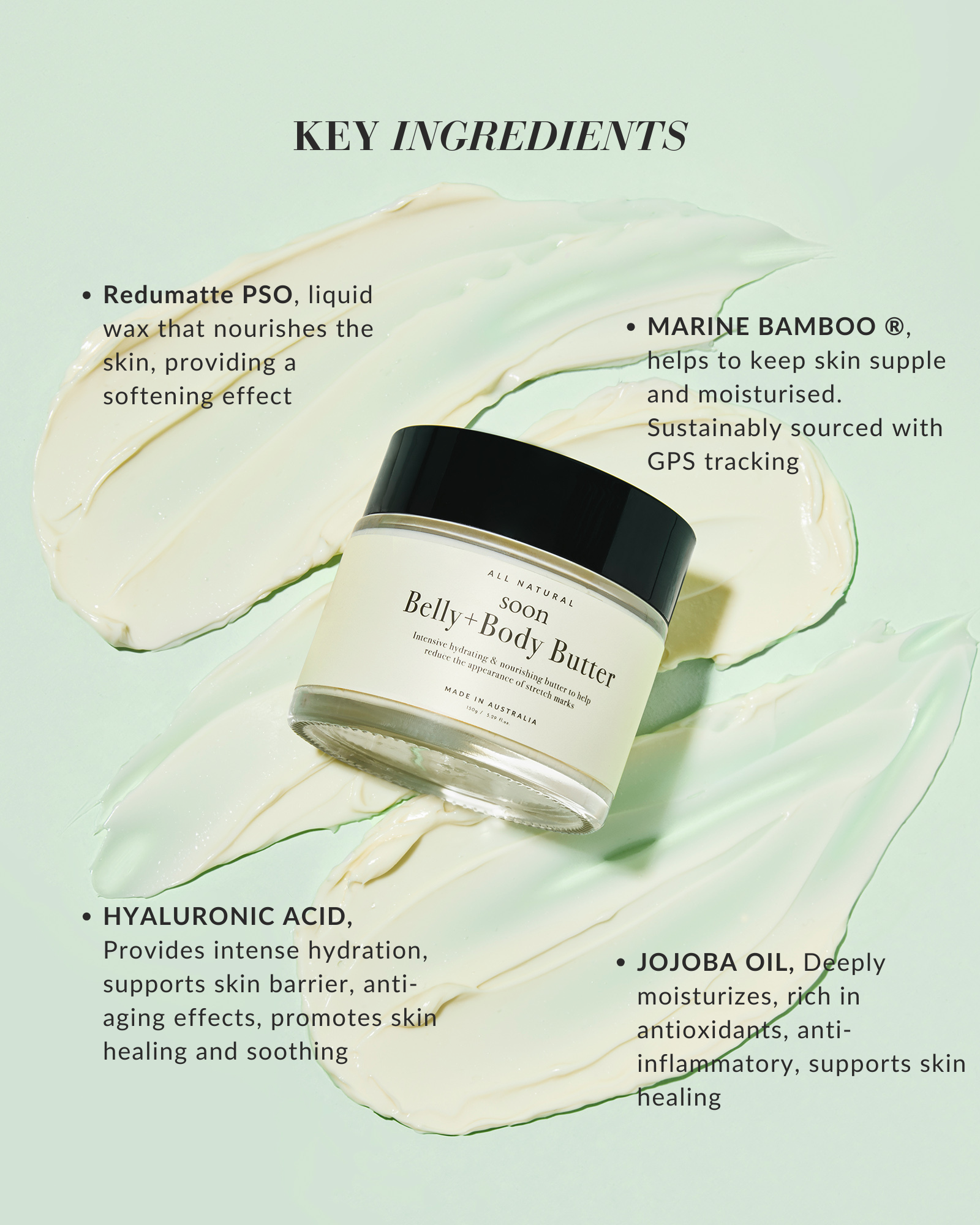 Our powerful all-natural belly butter contains MARINE BAMBOO®, an algae sustainably sourced from the ocean.