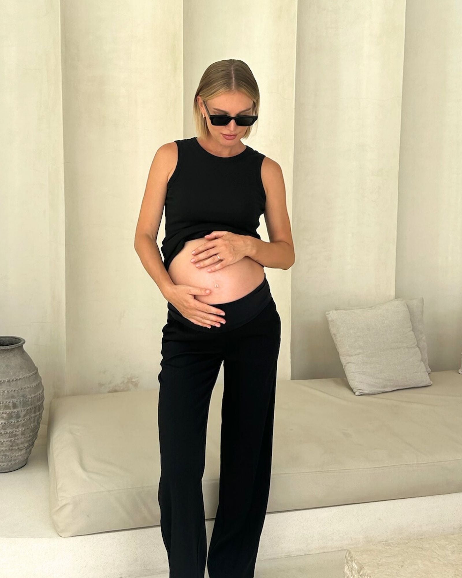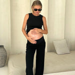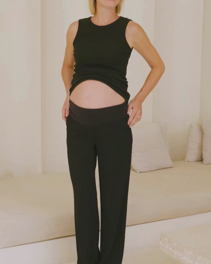 Crafted in a soft rib blend of cotton, viscose, and stretch, this sleeveless tank offers a smooth fit that moves with you. Perfect for layering or wearing solo, it’s designed to flatter through every stage of pregnancy and beyond.