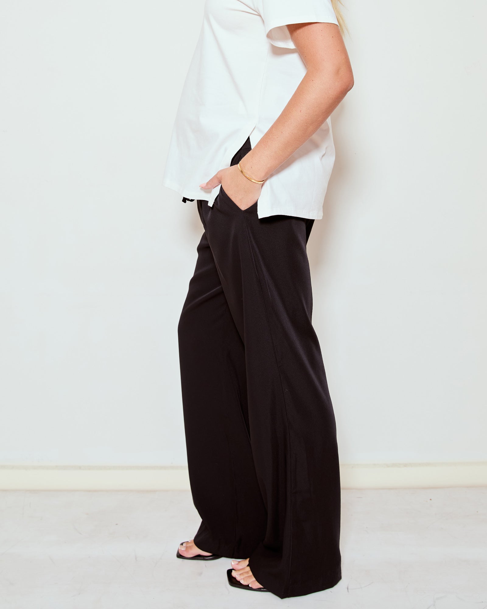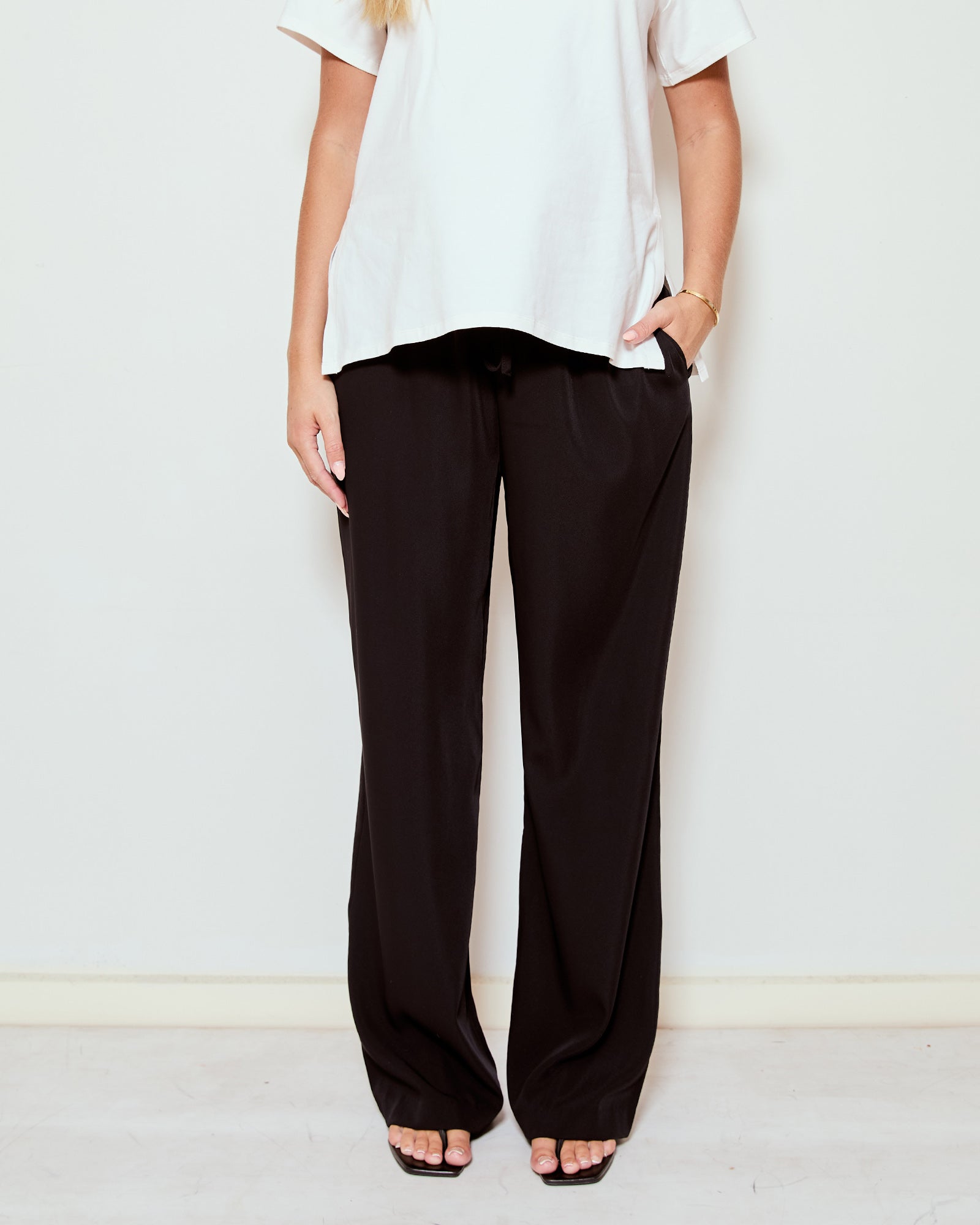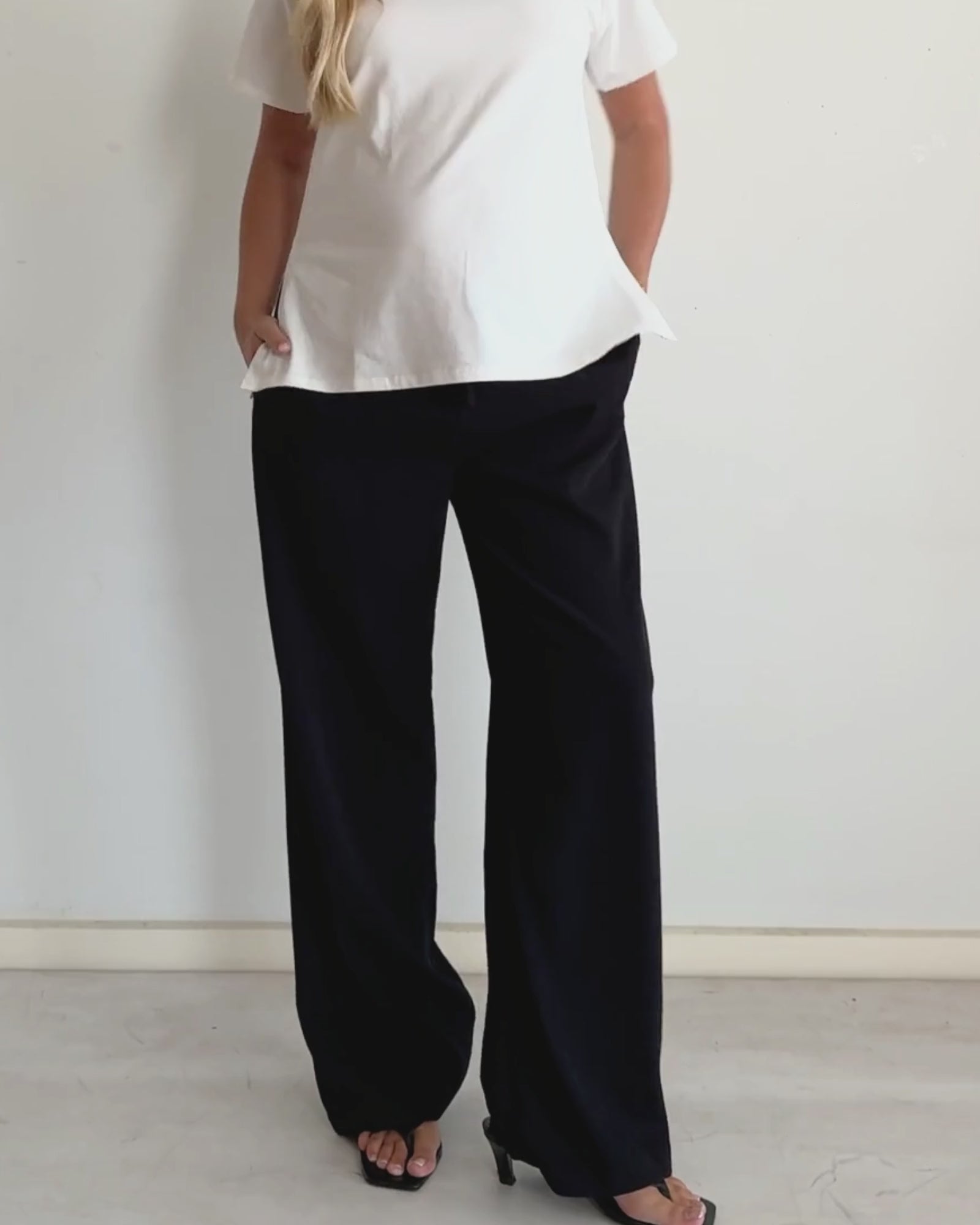 The Draped Wide Leg Pants are designed for effortless comfort and a relaxed, elevated look throughout pregnancy. Crafted from 100% TENCEL™, the fabric is ultra-soft, breathable, and beautifully draped, offering a smooth feel against the skin and all-day comfort.