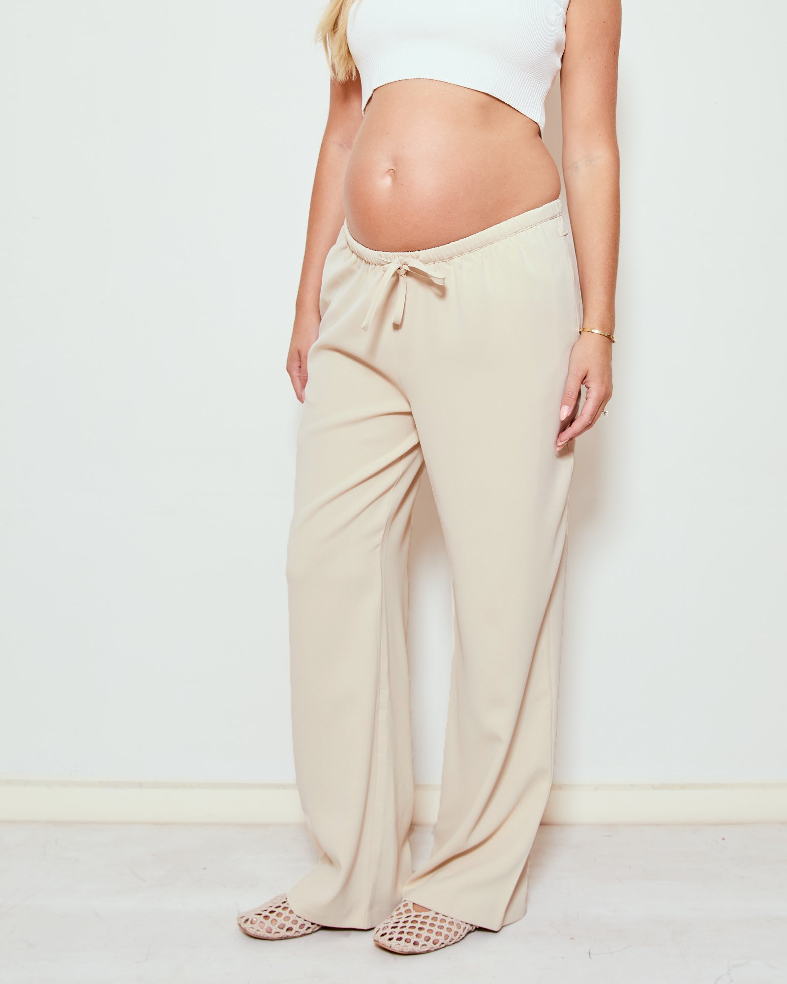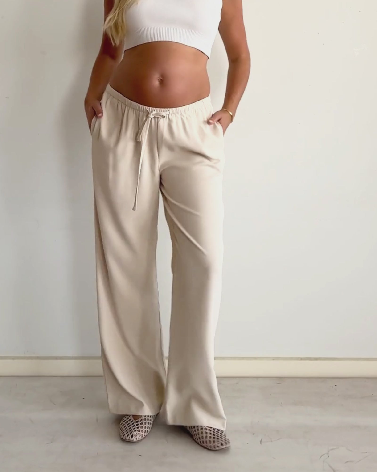 Featuring a flattering wide-leg silhouette and a comfortable elastic waistband with an adjustable drawstring that sits gently under your bump, they’re an easy everyday essential you’ll reach for throughout pregnancy and beyond.