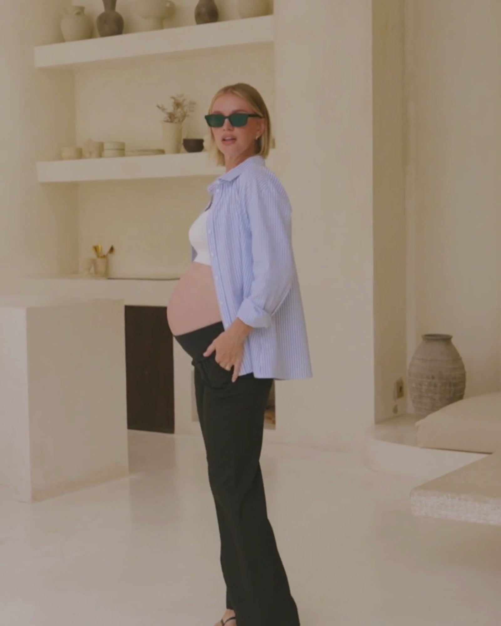 Start with your pre-pregnancy size as a guide — our pieces are made to stretch, move, and grow with you through every stage.