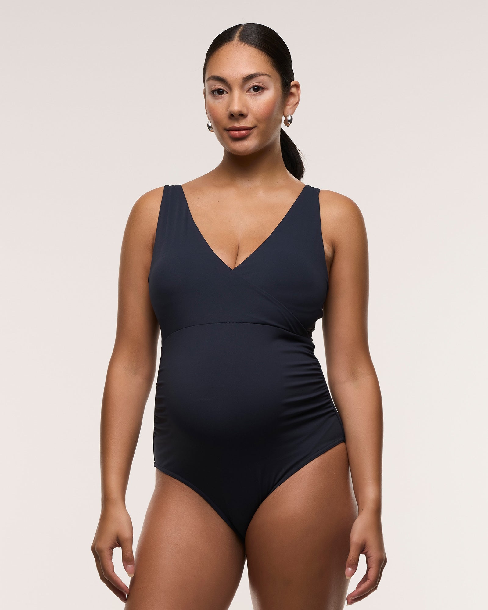 -Side seam ruching for growing bump