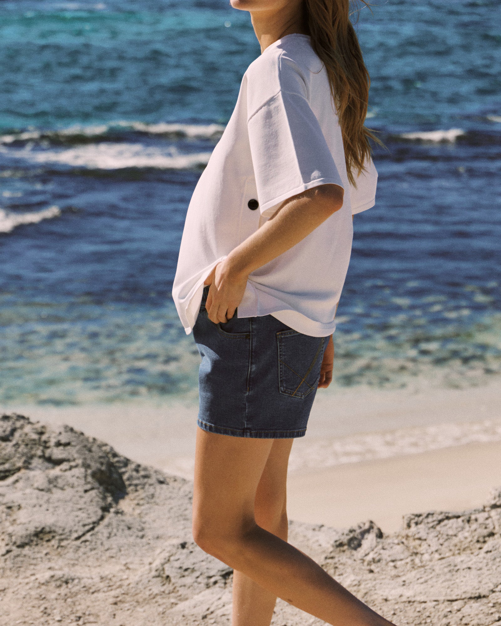 Meet the shorts version of our best-selling Heaven Straight Jeans. Designed with a straight-leg fit and soft stretch waistband, these maternity denim shorts offer everyday comfort with a timeless look. Ideal for warm days, from pregnancy through postpartum.