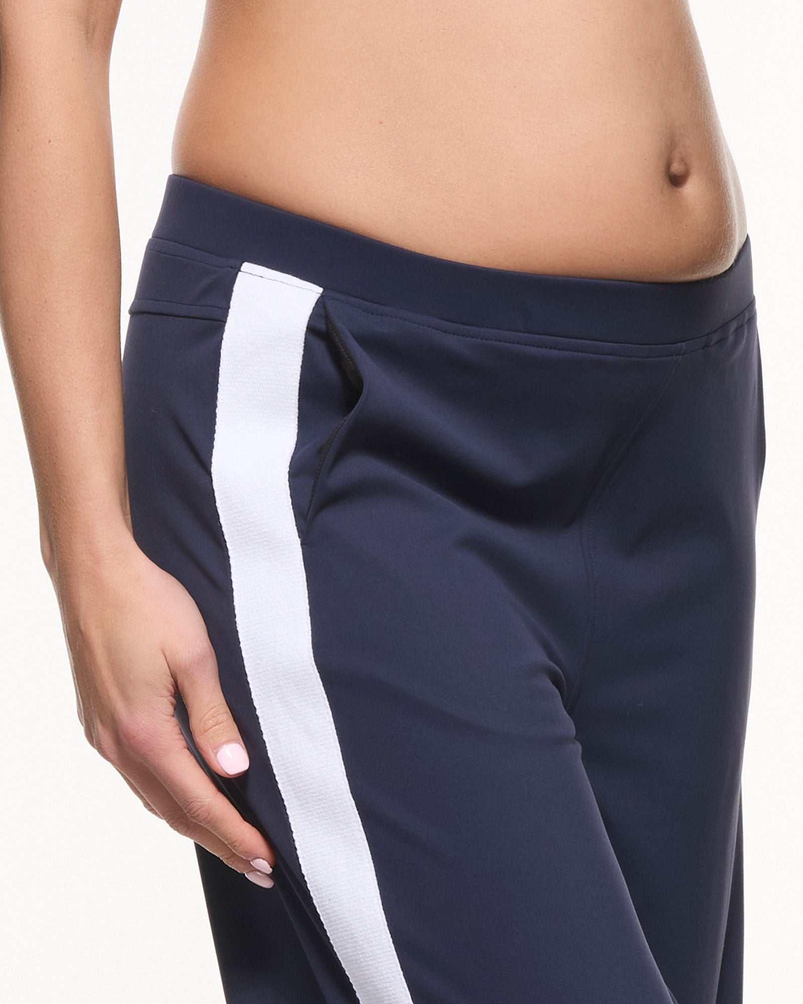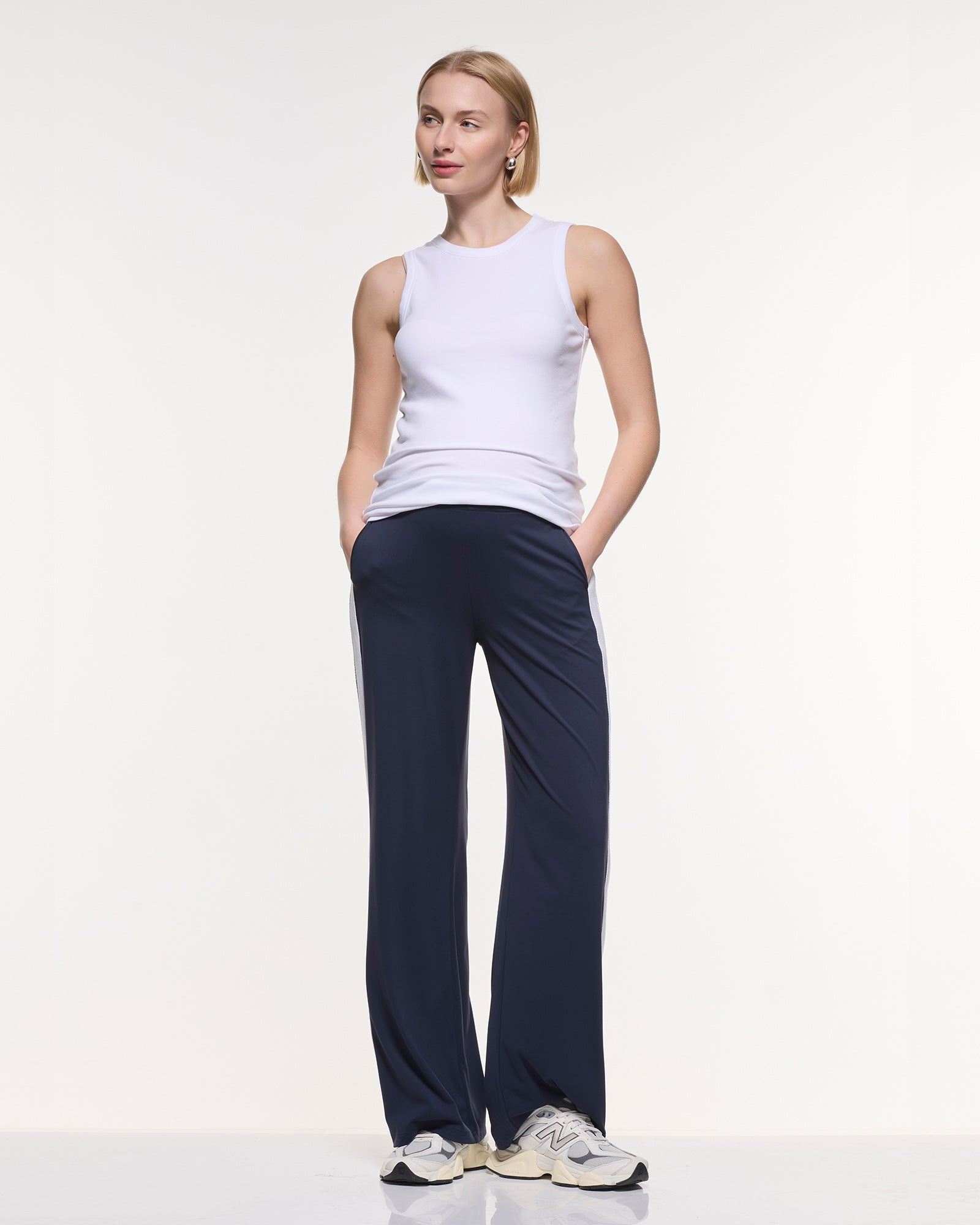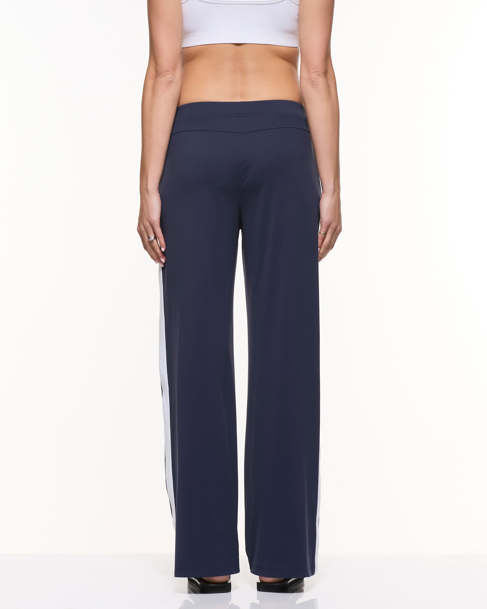 Sporty, stretchy, and seriously cool — our Super Stretch Straight Pants are your new everyday fave. Made in our buttery-soft, four-way stretch active fabric, they feature an on-trend wide leg and a bold white side stripe for extra style points. The comfy midrise elastic waistband supports you through every trimester (and long after), and yes — they have pockets! Perfect for mums on the move who want to look good and feel even better.