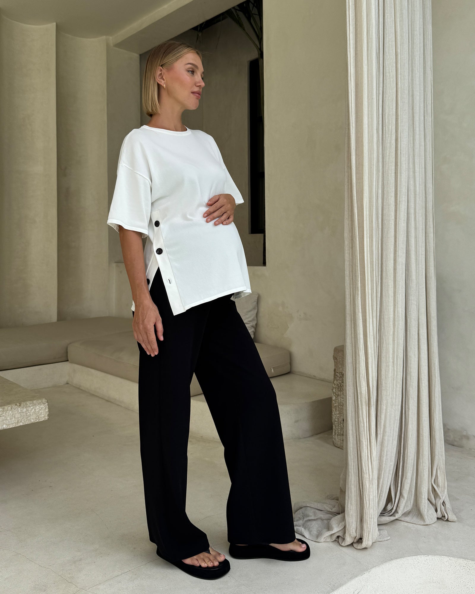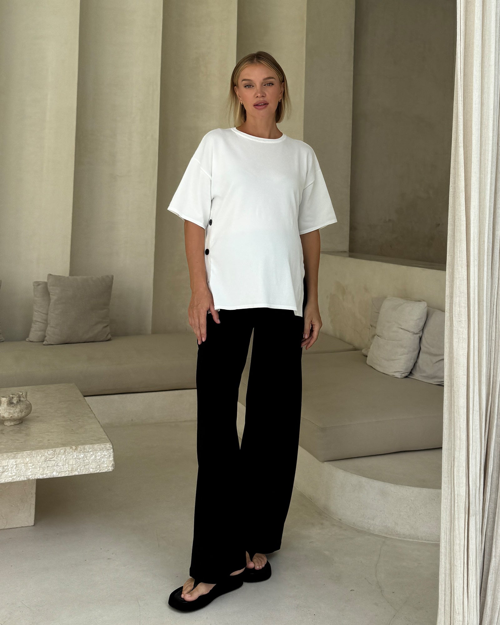Soon Maternity sizing is designed to be generous, ensuring a comfortable fit throughout your pregnancy and beyond. We recommend choosing your pre-pregnancy size.