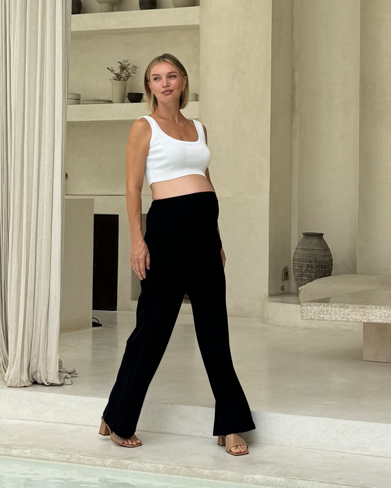 Start with your pre-pregnancy size as a guide — our pieces are made to stretch, move, and grow with you through every stage.