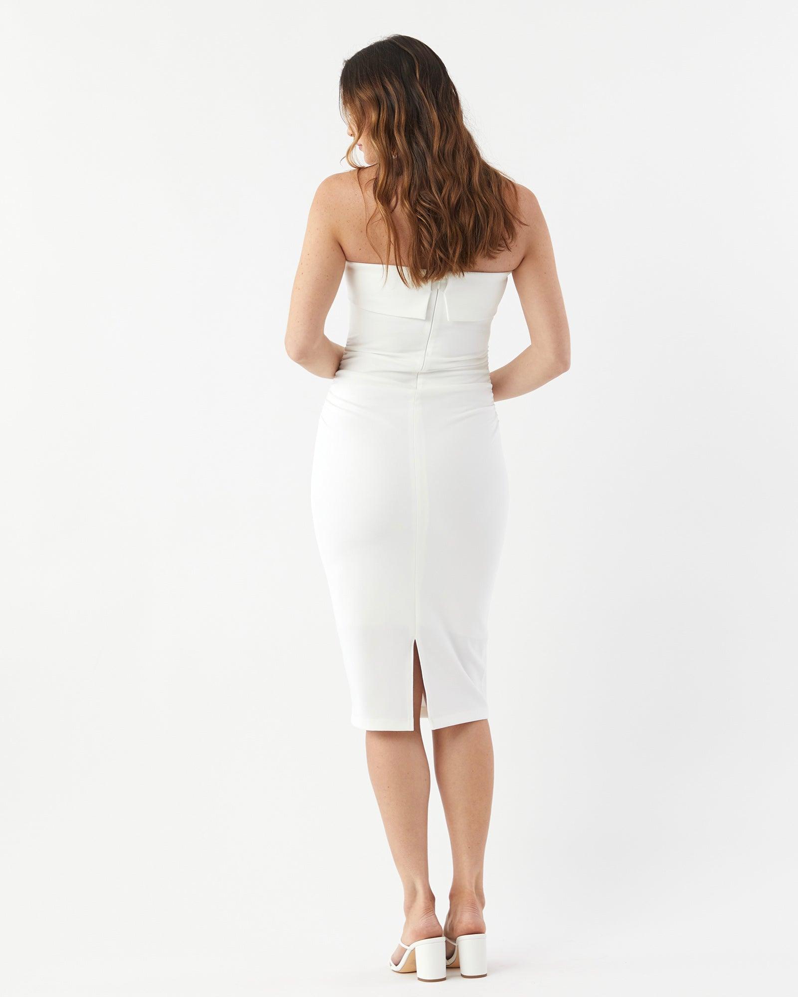 A chic strapless silhouette & soft stretch crepe fabrication make the Lana Strapless Dress ideal for your next special occasion. With side ruching to accommodate your belly through all trimesters, a classic midi length and folded overlay at the bust, the dress also has an invisible zip closure at the back to ensure the perfect fit.
