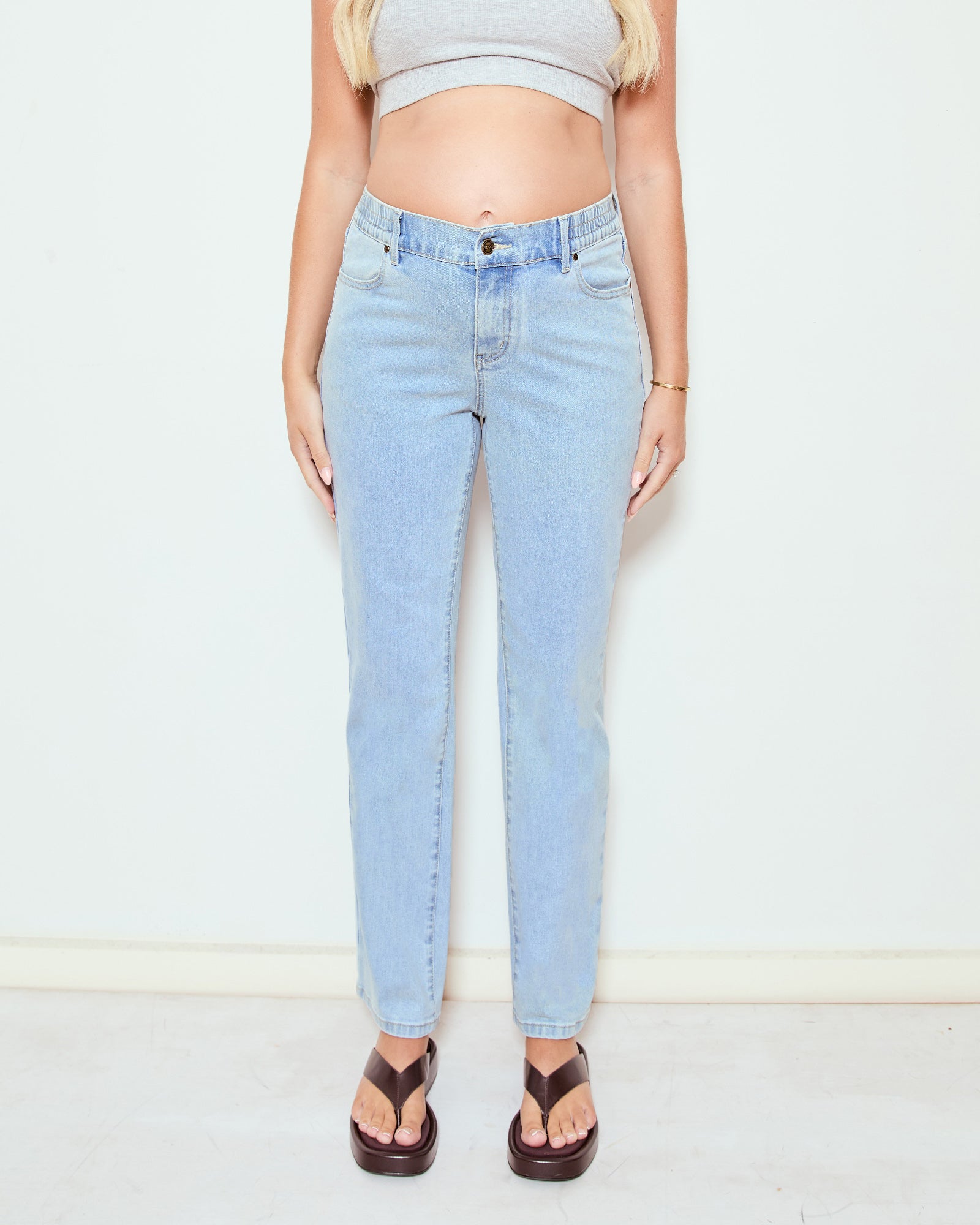 The ultimate mum jeans! Our Relaxed Wide Leg Jeans are the perfect blend of style and comfort. Designed with our signature full elastic waistband that sits over your belly, they feature classic denim details including pockets, metal rivets and a button & fly closure. The wide and relaxed leg is flattering and on-trend. These jeans will be on repeat throughout your pregnancy and loved well after.