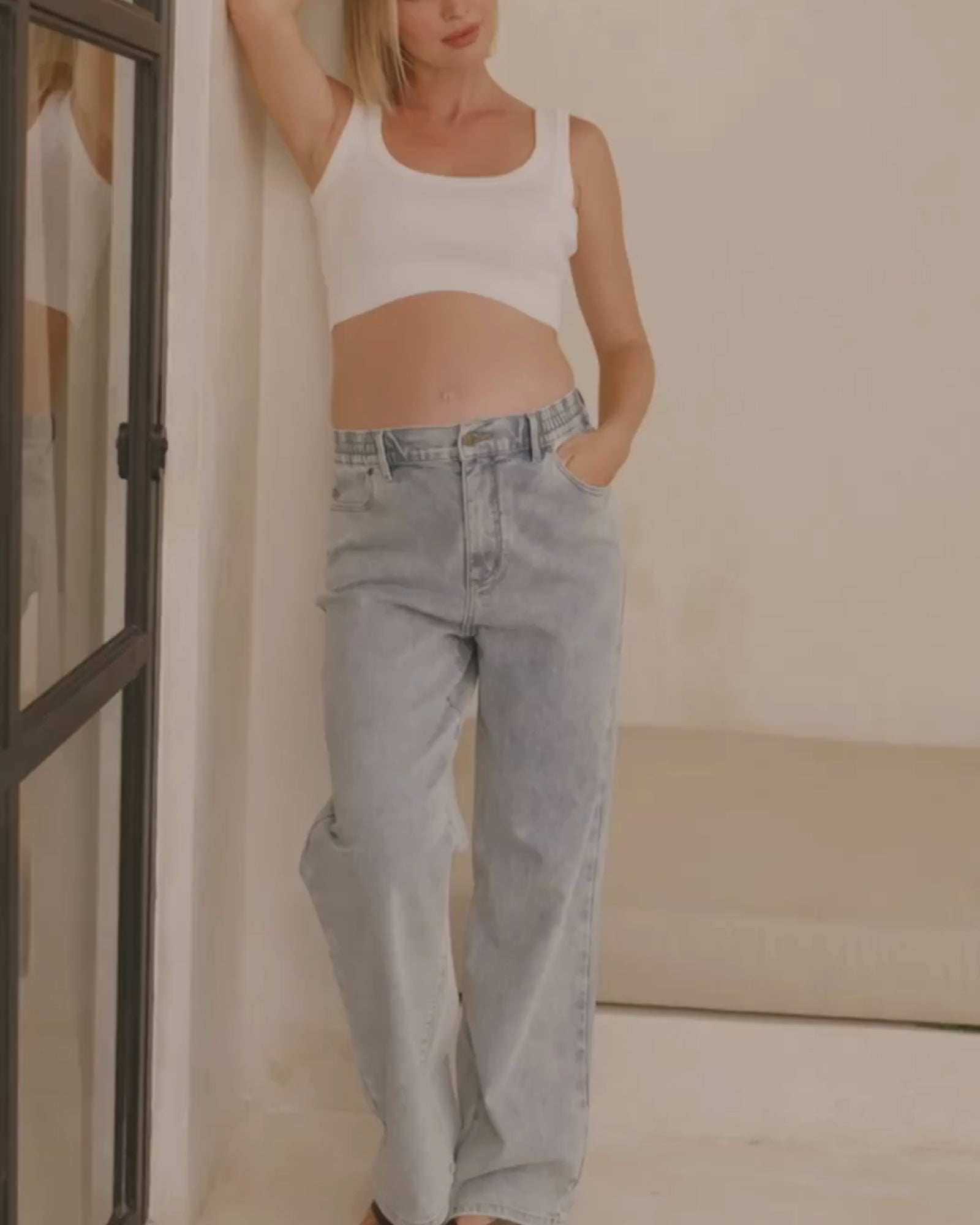 The ultimate mum jeans! Our Relaxed Wide Leg Jeans are the perfect blend of style and comfort. Designed with our signature full elastic waistband that sits over your belly, they feature classic denim details including pockets, metal rivets and a button & fly closure. The wide and relaxed leg is flattering and on-trend. These jeans will be on repeat throughout your pregnancy and loved well after.