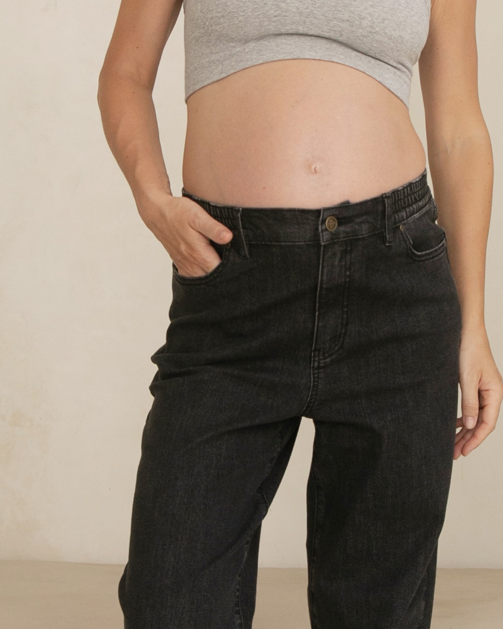 The ultimate mum jeans! Our Relaxed Wide Leg Jeans are the perfect blend of style and comfort. Designed with our signature full elastic waistband that sits over your belly, they feature classic denim details including pockets, metal rivets and a button & fly closure. The wide and relaxed leg is flattering and on-trend. These jeans will be on repeat throughout your pregnancy and loved well after.